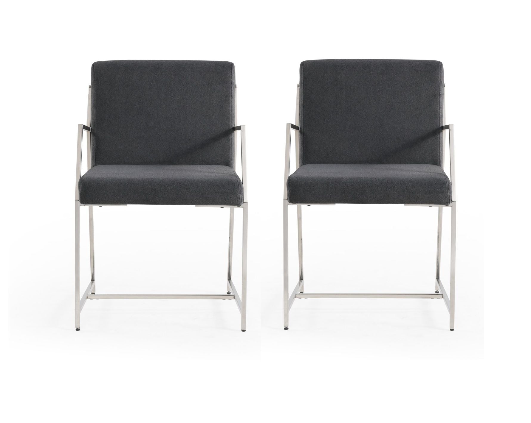 Sleek polished stainless angles that wrap around an upholstered seat compose a comfortable and handsome chair statement for your contemporary dining space.