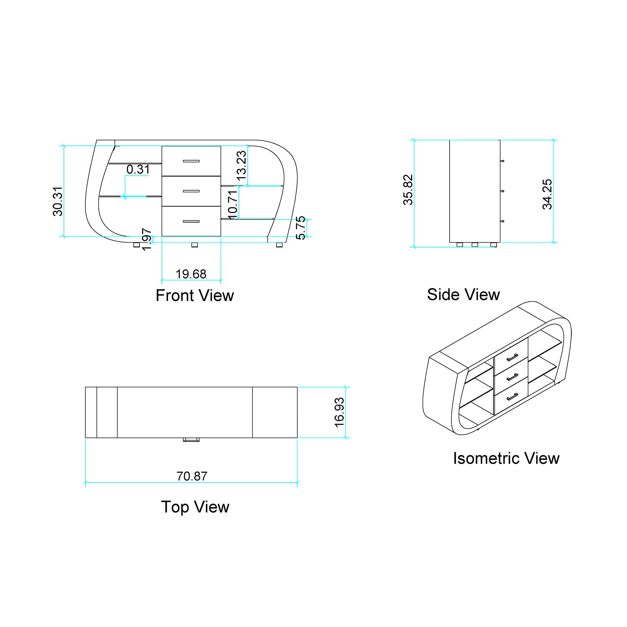 • Spacious Storage: Features open shelves and three storage drawers for ample organization