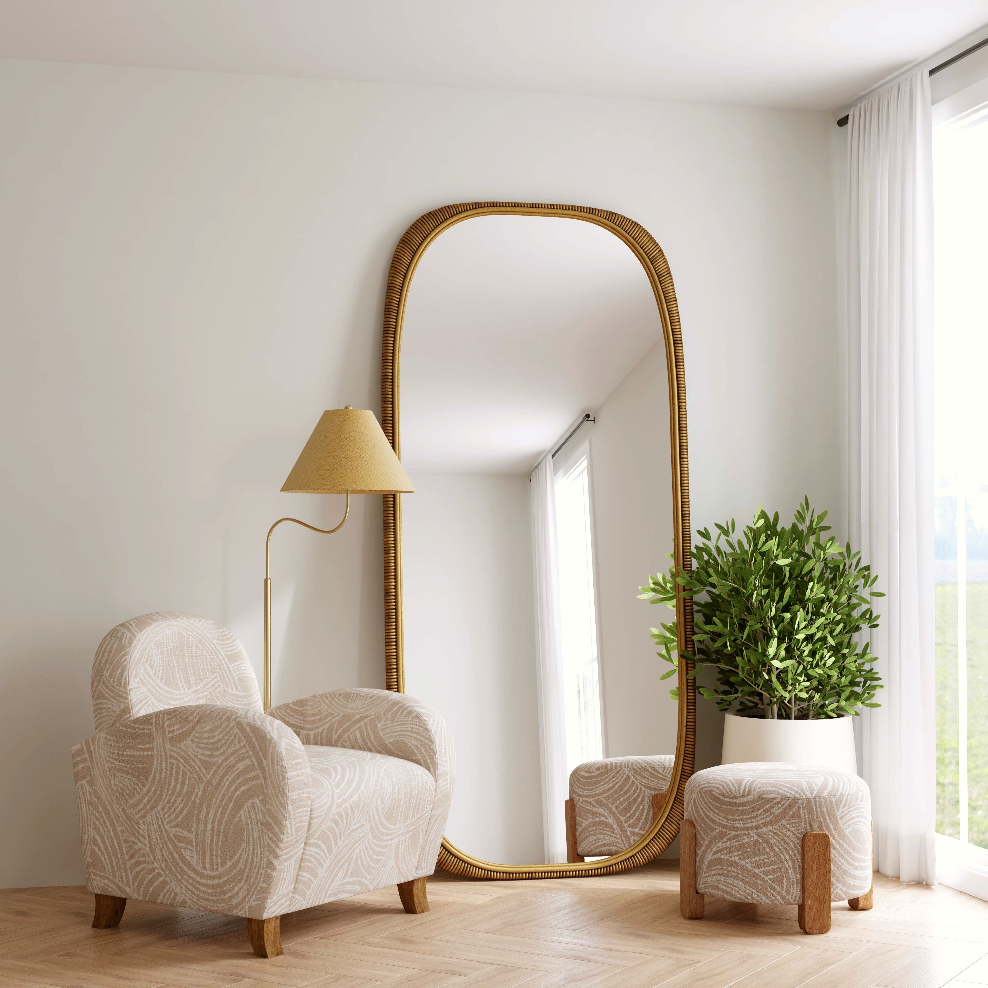 The Willow Accent Ottoman exudes a delicate blend of modern charm and traditional warmth, making it an inviting addition to any space. Its soft khaki swirl fabric wraps around plush padding, creating a cozy retreat for tired feet or an elegant seat for guests. The exposed wood base in a natural mango finish adds a touch of organic beauty, grounding the piece in natural elements while offering durability. Perfectly suited for multifunctional use, this ottoman seamlessly transitions between a stylish footrest and a comfortable stool, making it a versatile and timeless piece in any room.