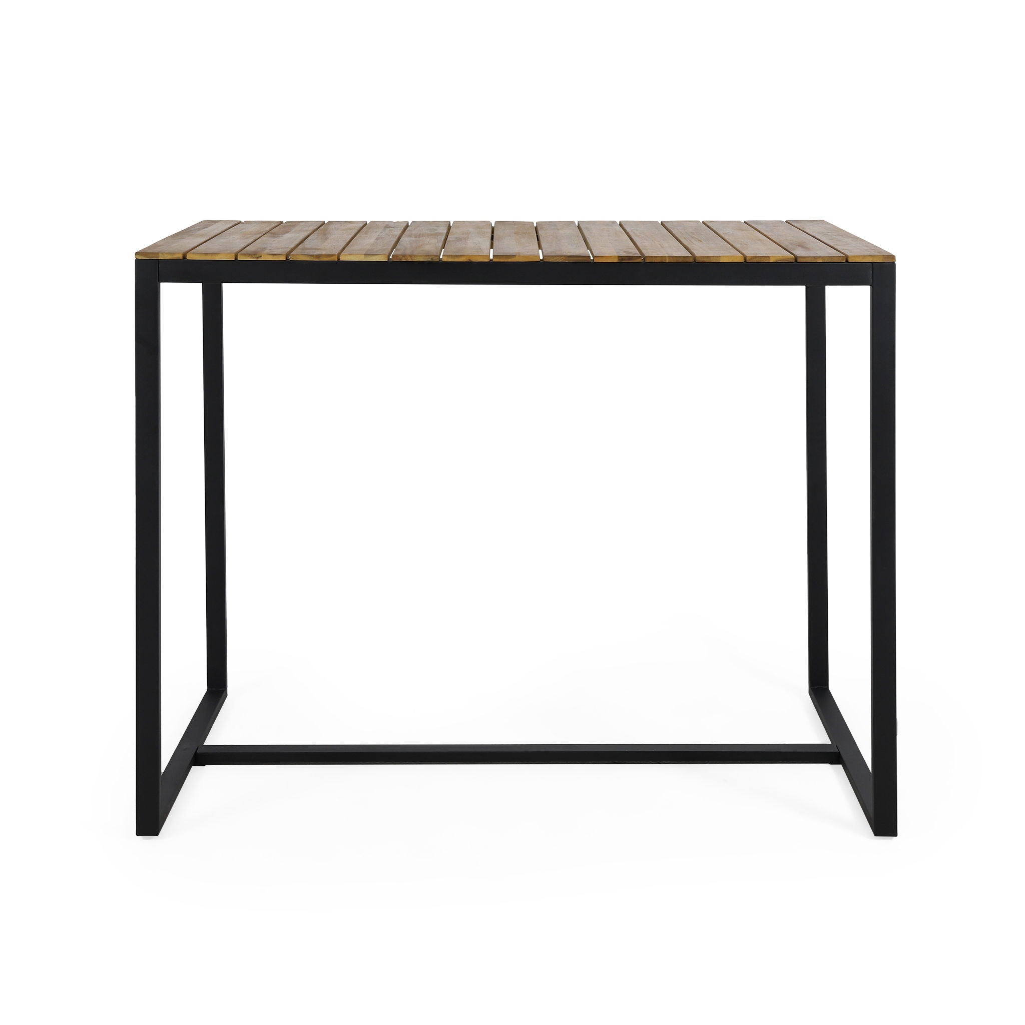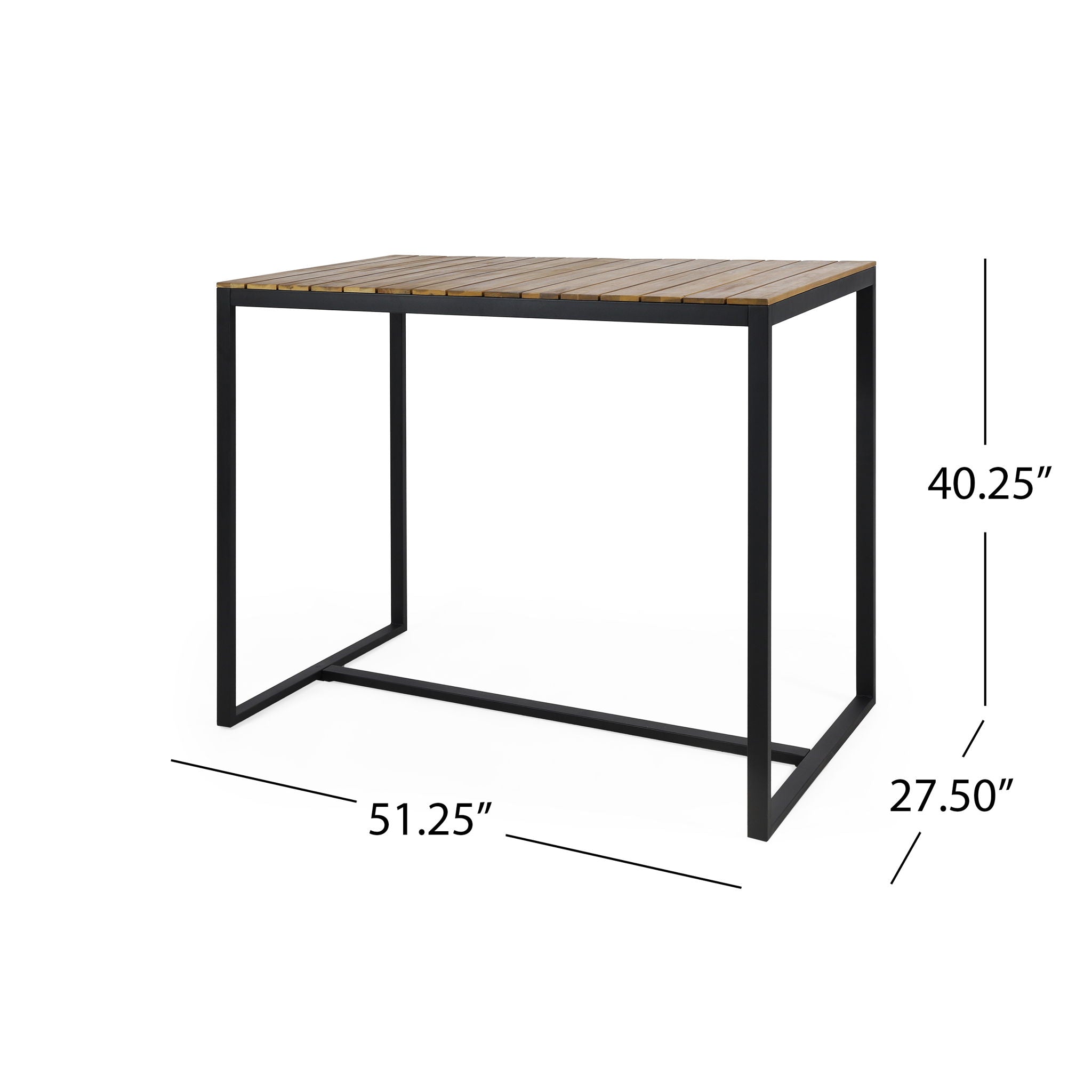 Ernesto - Outdoor Industrial Acacia Wood Bar Table - Teak / Black Metal