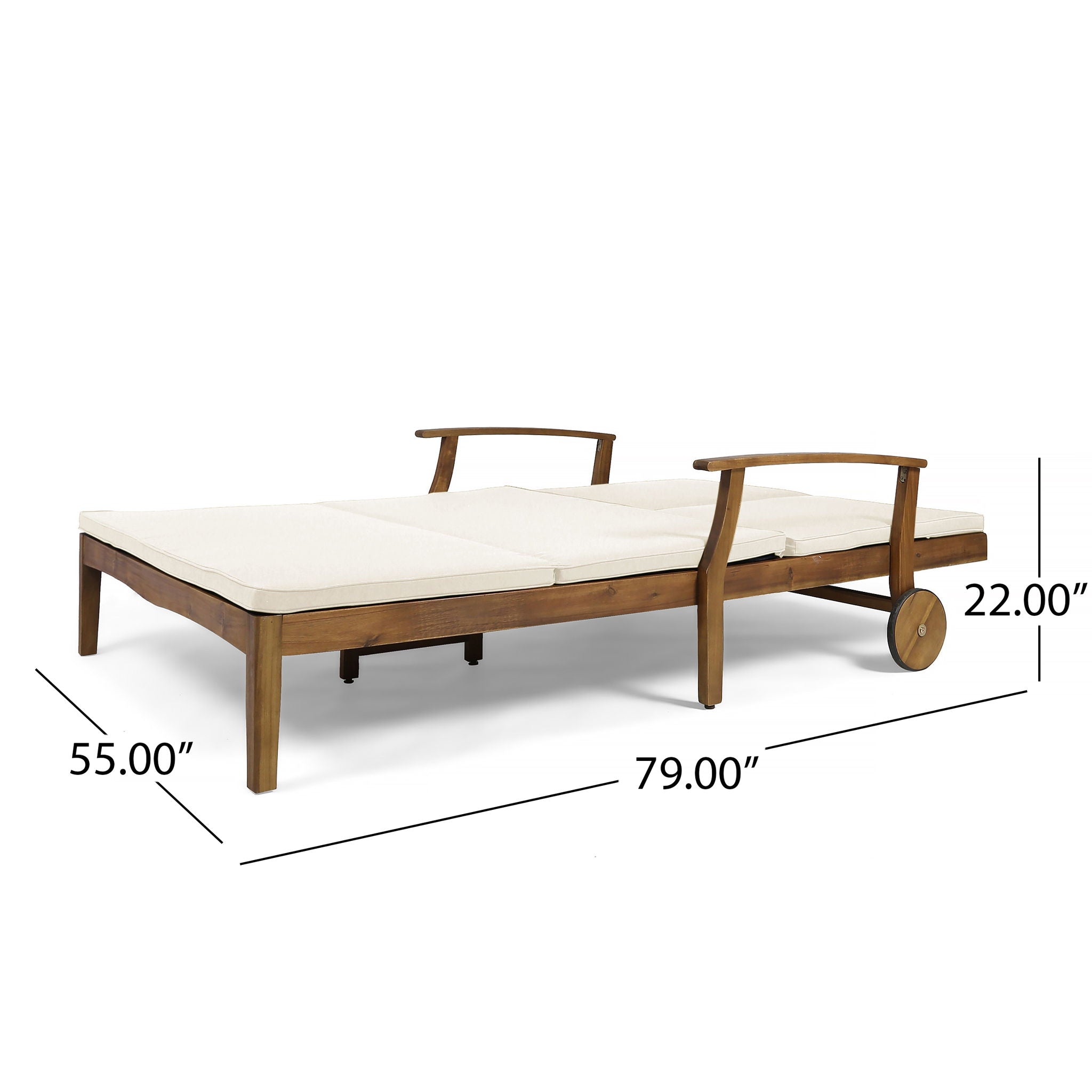 Etherealize - Outdoor Adjustable Double Chaise Lounge With Water Resistant Cushions - Teak / Cream