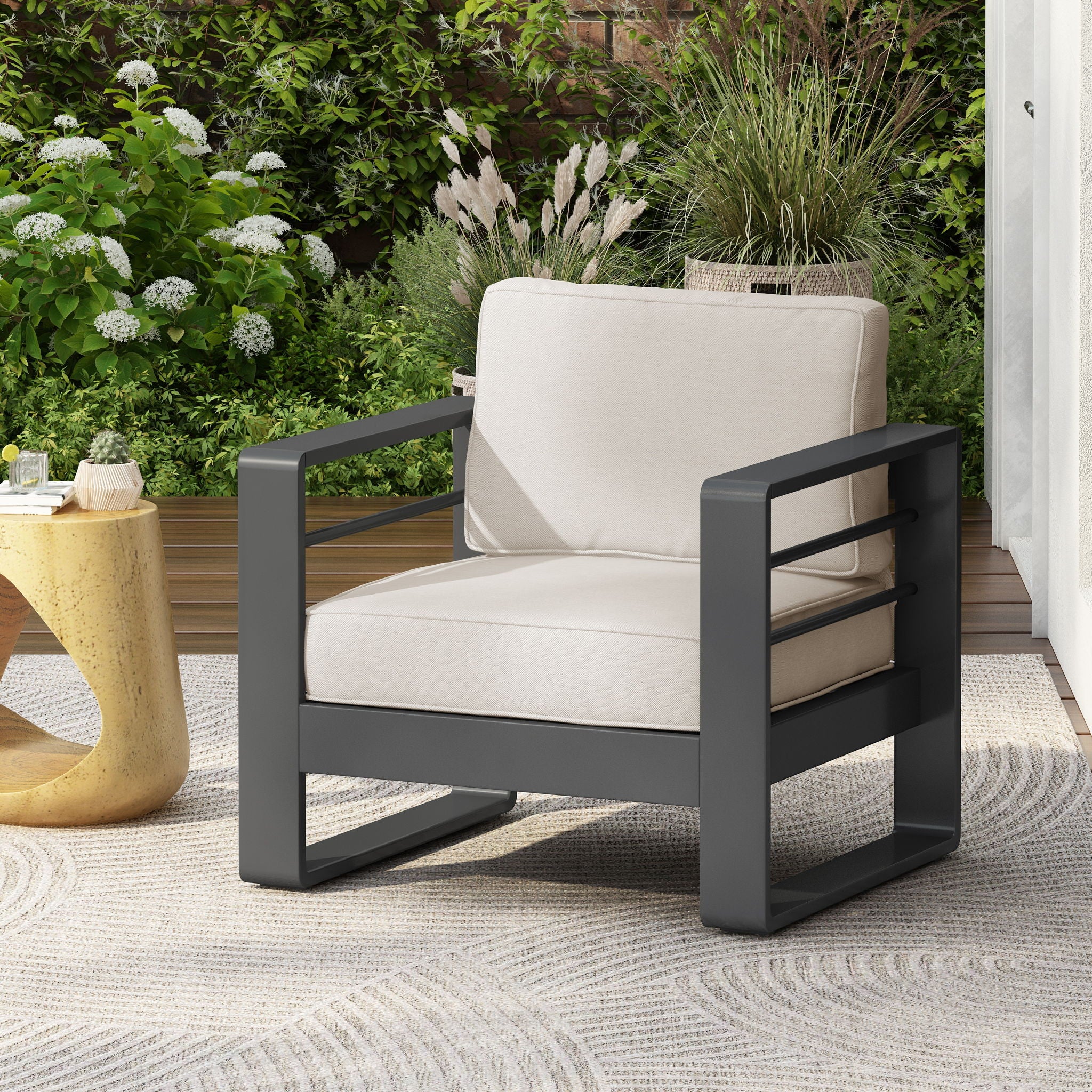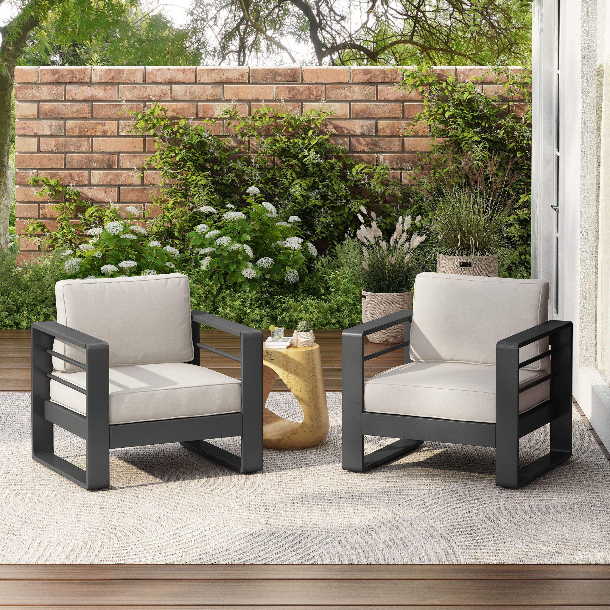 Maya Bay - Outdoor Patio Aluminum Club Chair (Set of 2) Cushion Durable And Weather Resistant - Beige / Black