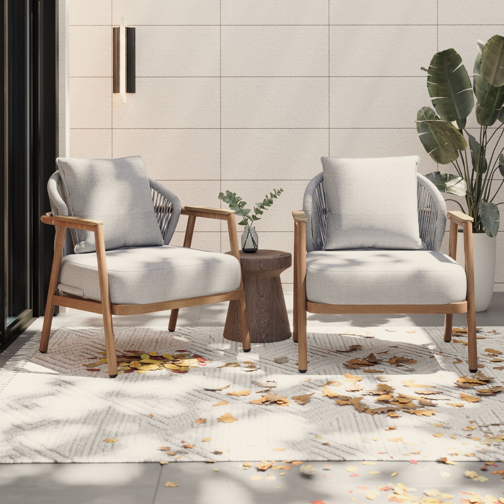 Orla Outdoor Rope Club Chair (Set of 2) Textured Cushions Iron Frame - Taupe / Teak