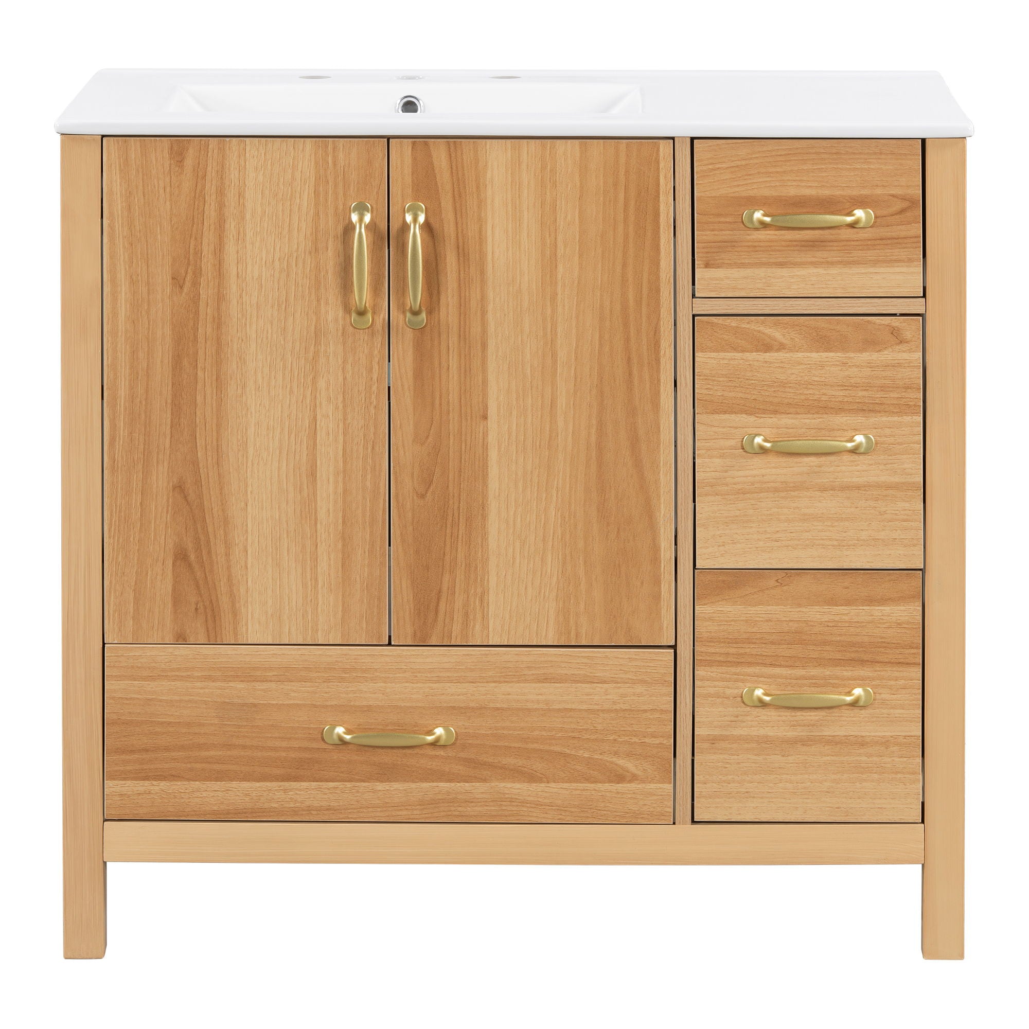36" Bathroom Vanity, 2 Soft Close Doors, 4 Soft Close Drawers, Adjustable Shelf, Storage Cabinet - Acacia Wood