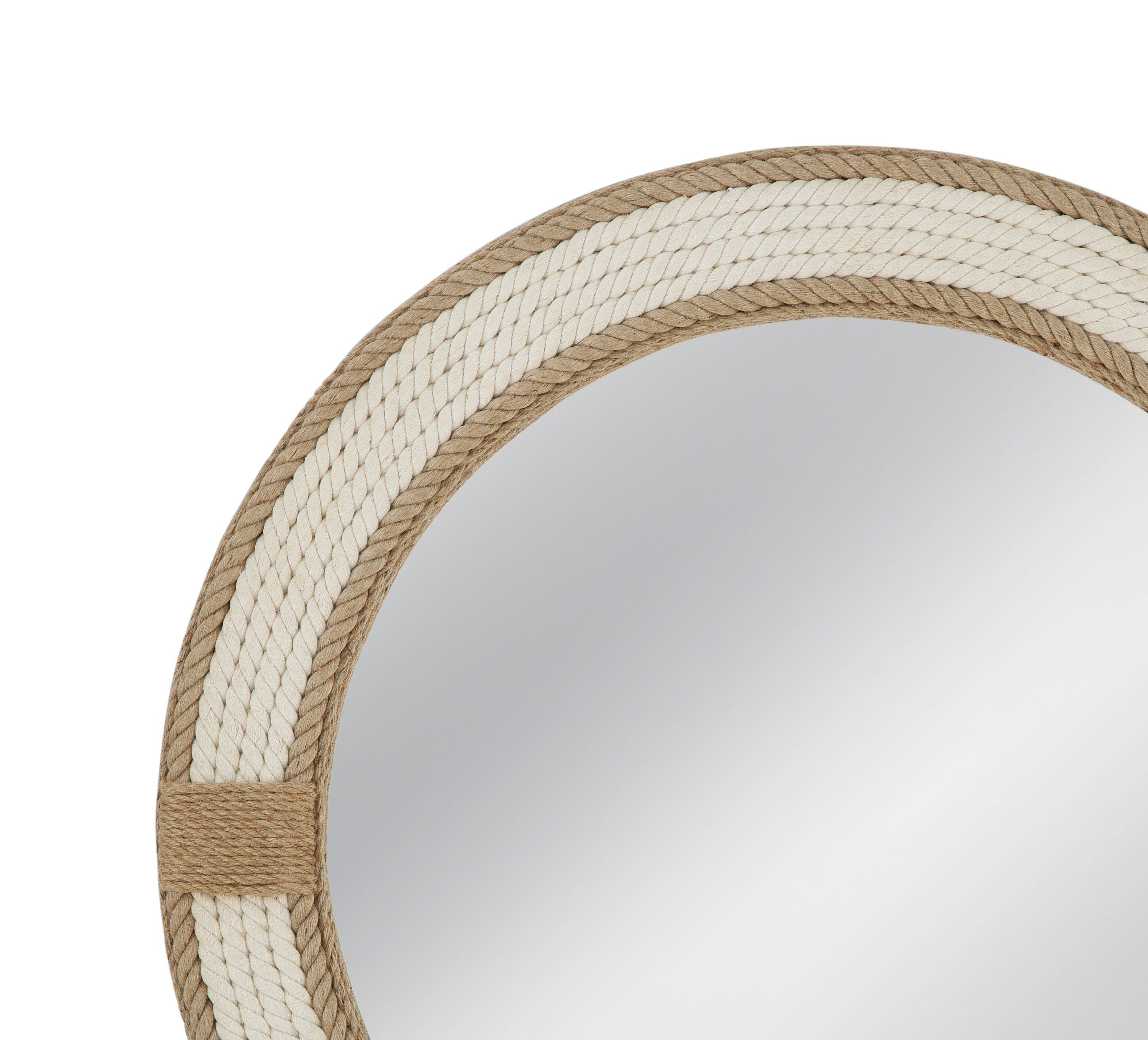 The Apolline Wall Mirror boasts a charming round design complemented by a natural wood rope frame, adding a touch of coastal and boho flair to your space. Its refreshing white hue effortlessly blends with various decor styles, while the natural rope detail adds a rustic coastal charm. Elevate your home decor with this stylish yet understated mirror, perfect for infusing your space with a relaxed and inviting vibe.