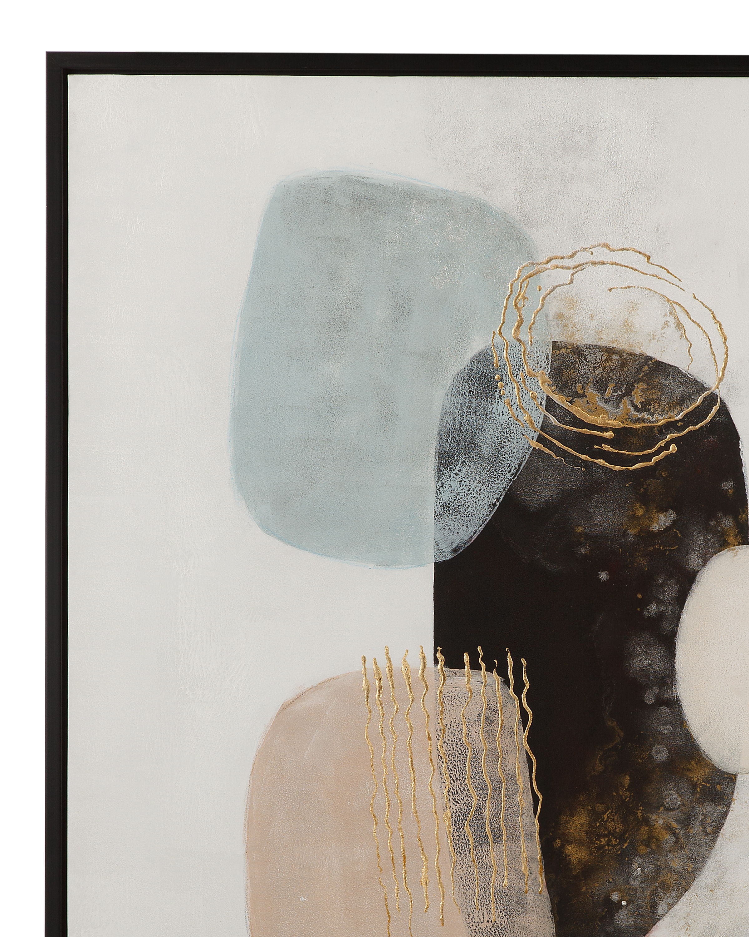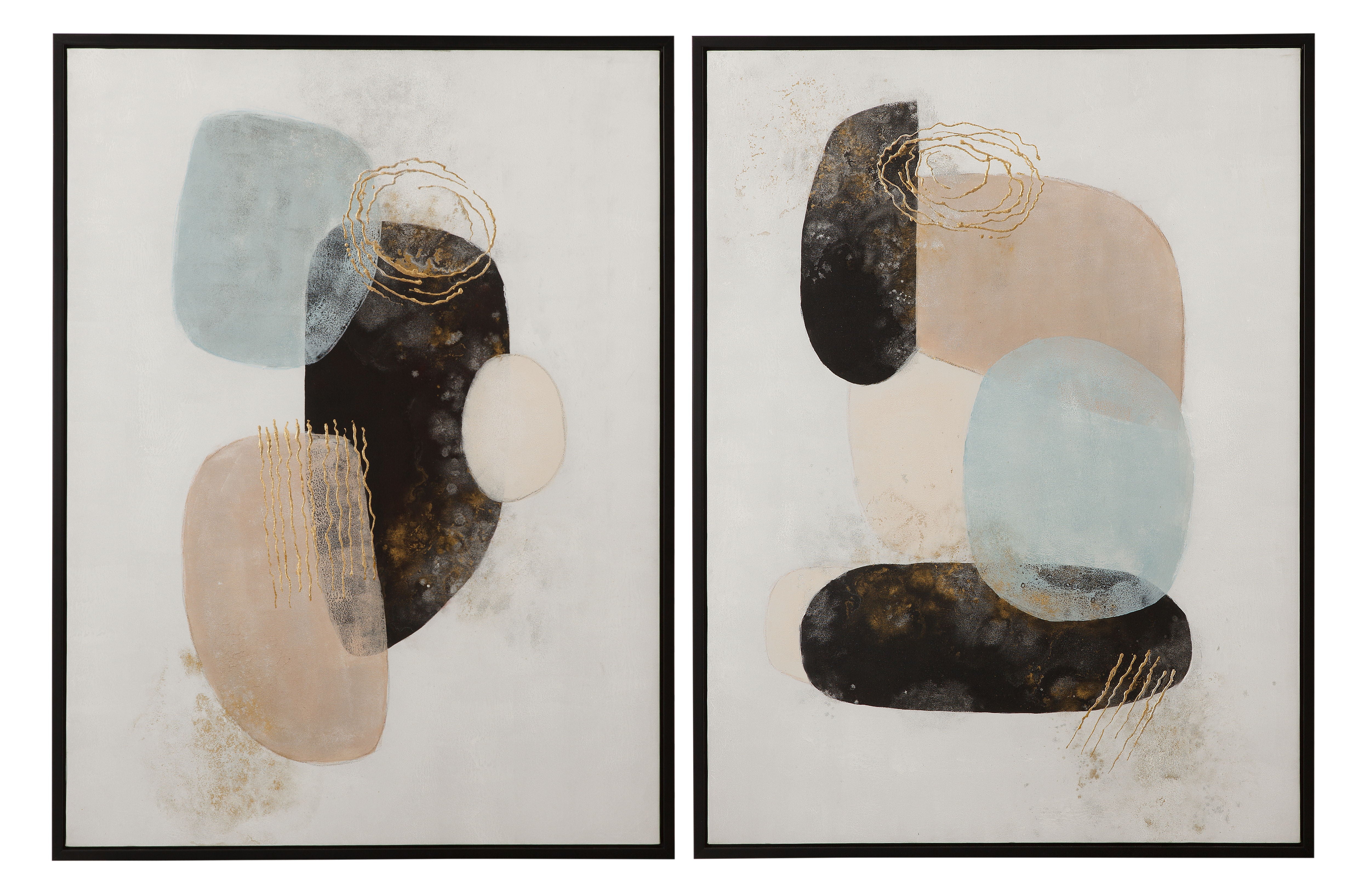 The Anthea framed canvas set of 2 is the perfect addition to any modern interior with organic shapes in various colors and sizes for visual interest. Each canvas is in a sleek black frame.