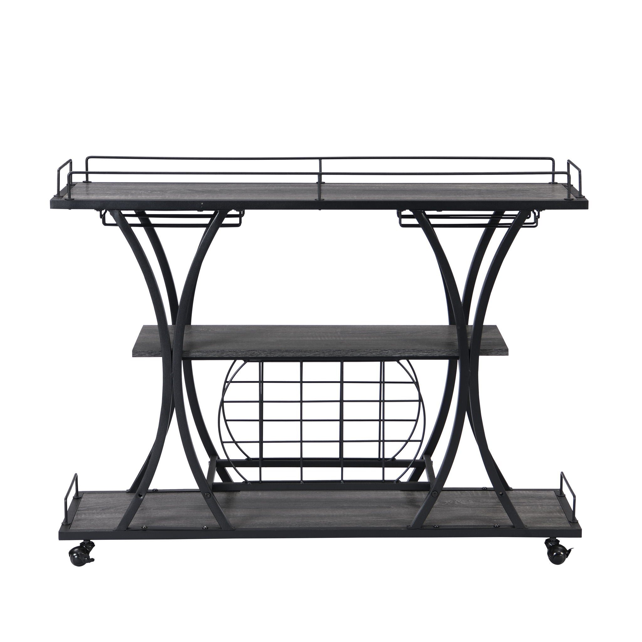 Bar Cart Kitchen Bar & Serving Cart For Home With Wheels 3 Tier Storage Shelves - Black / Gray