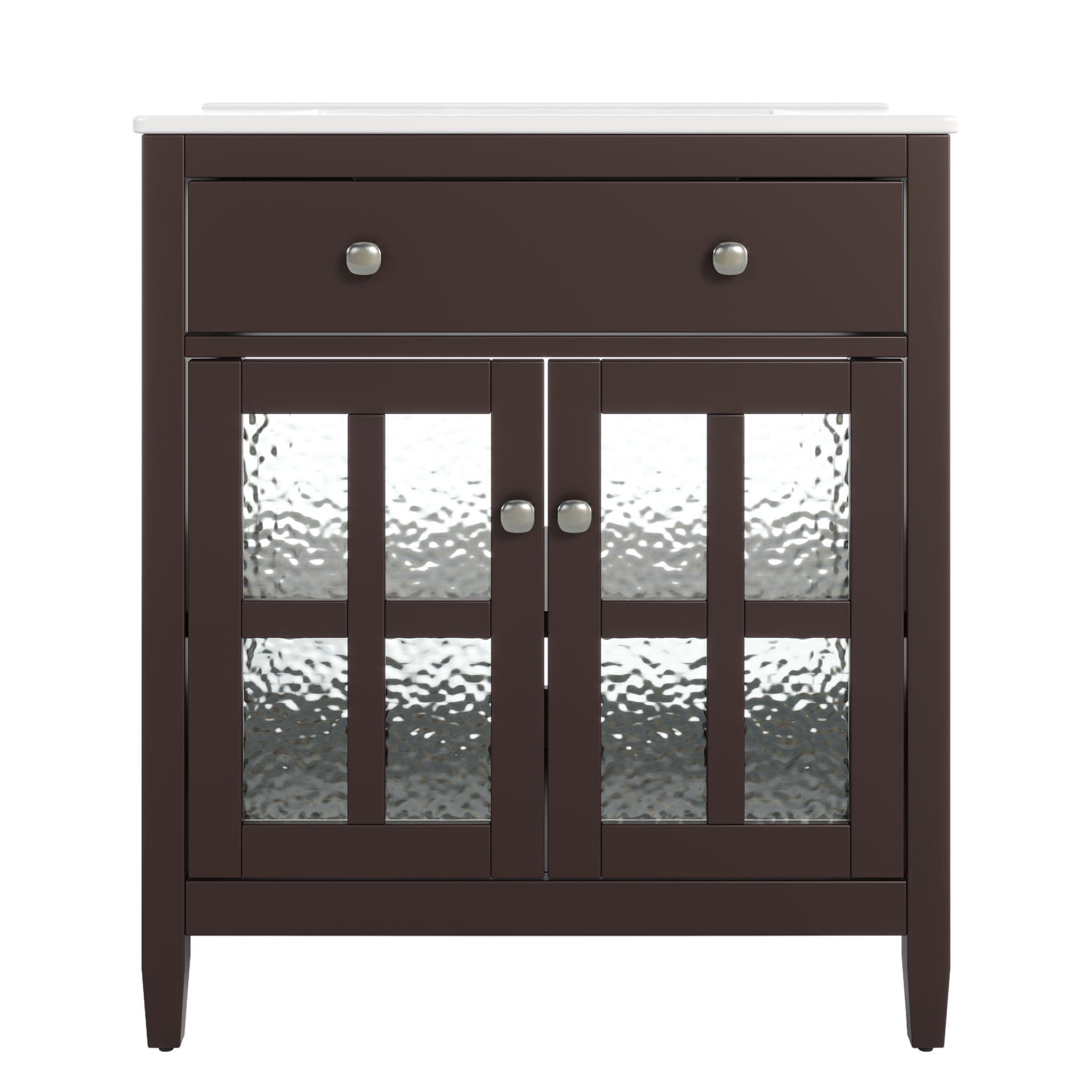 Bathroom Vanity With Sink, Adjustable Shelf & Tip Out Tray - Dark Brown