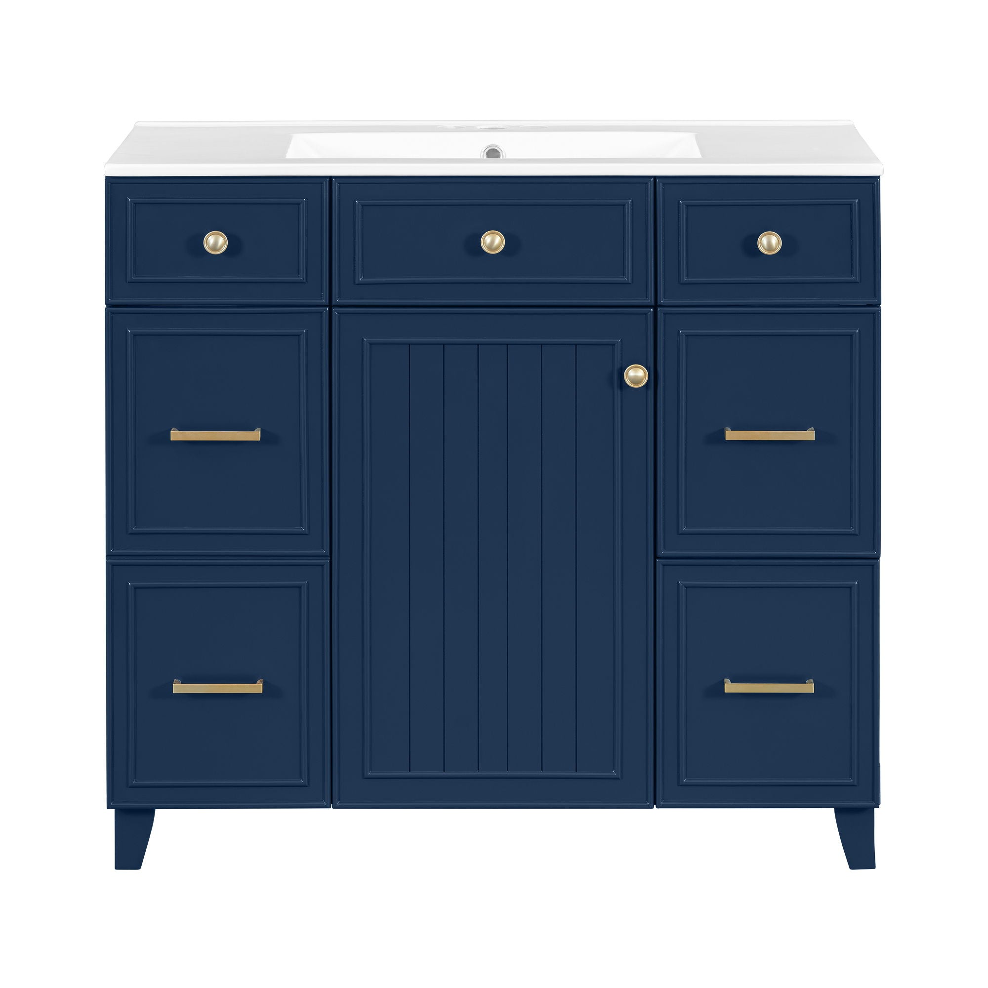 Bathroom Vanity With Sink, Soft Close Doors, Adjustable Shelves - Blue