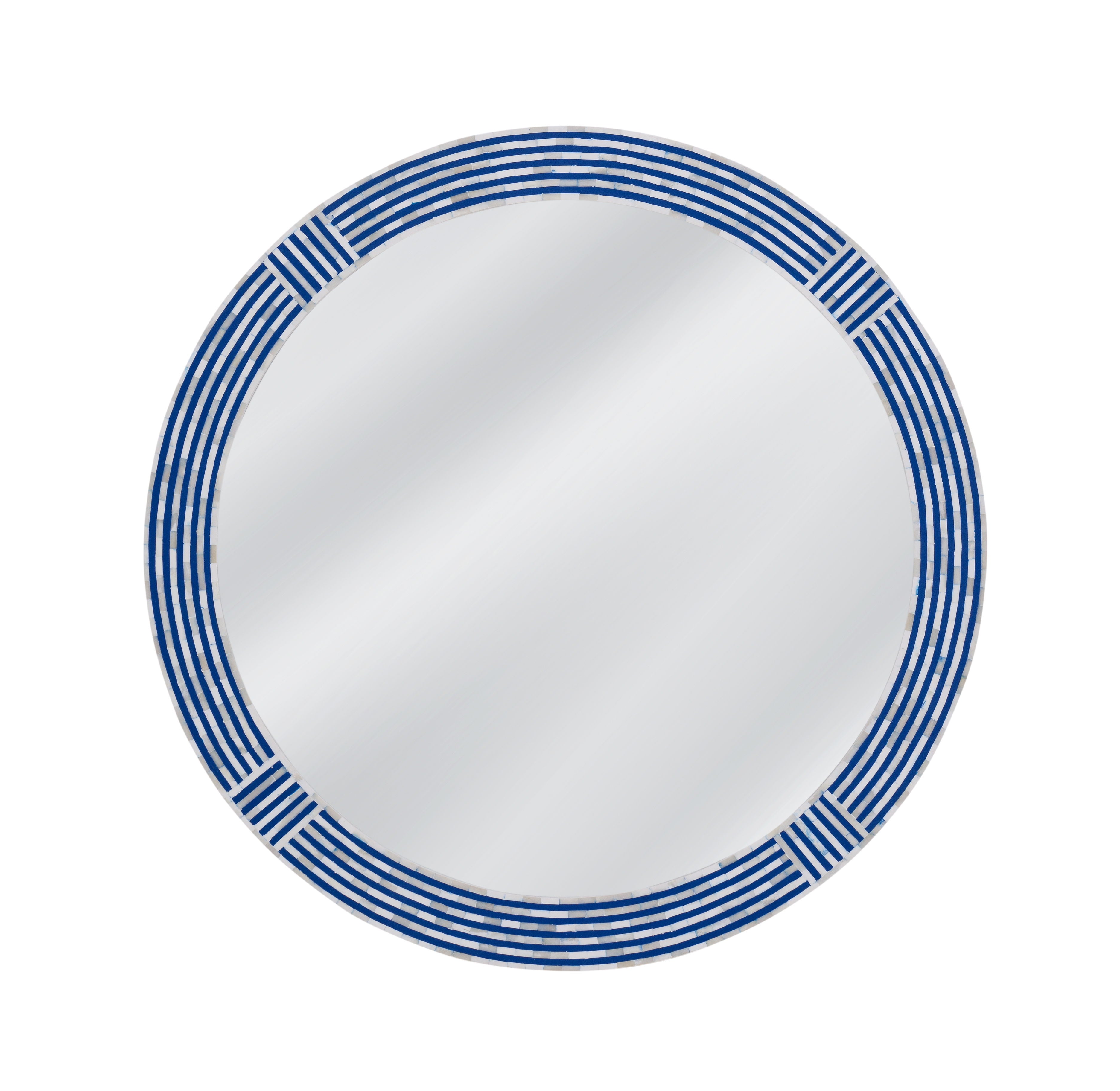 The Blue Circle Wall Mirror features a unique bone and blue resin inlay frame, combining contemporary coastal and boho aesthetics in a stunning round design. The mix of natural materials and soft blue tones creates a relaxed, inviting vibe, perfect for adding character and style to any room. Its modern design fits seamlessly into various interior styles, while the mirror's reflective surface enhances light and depth in your space. The Blue Circle Wall Mirror is an ideal choice for those seeking a fresh, coastal-inspired touch with a bohemian flair.