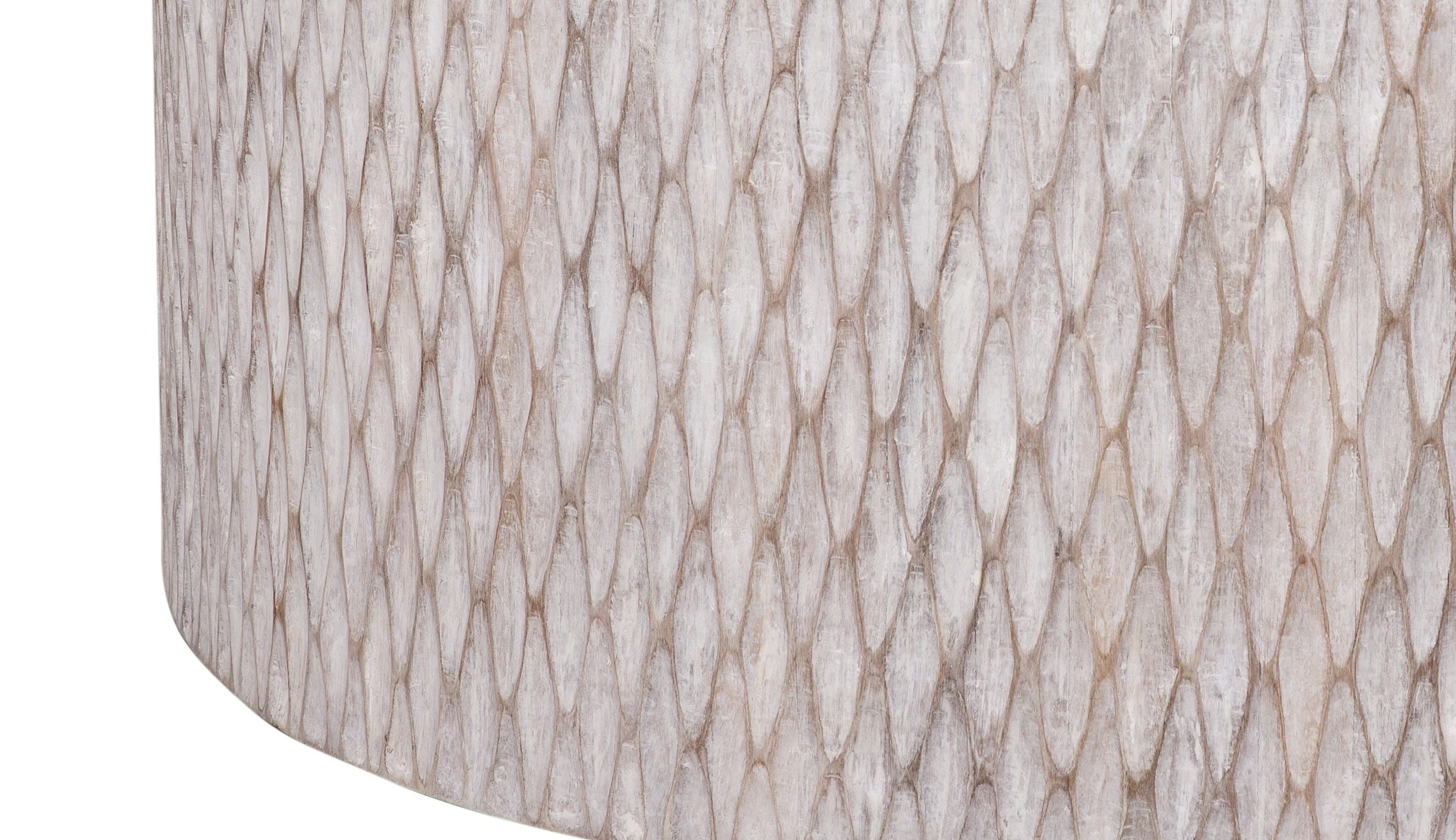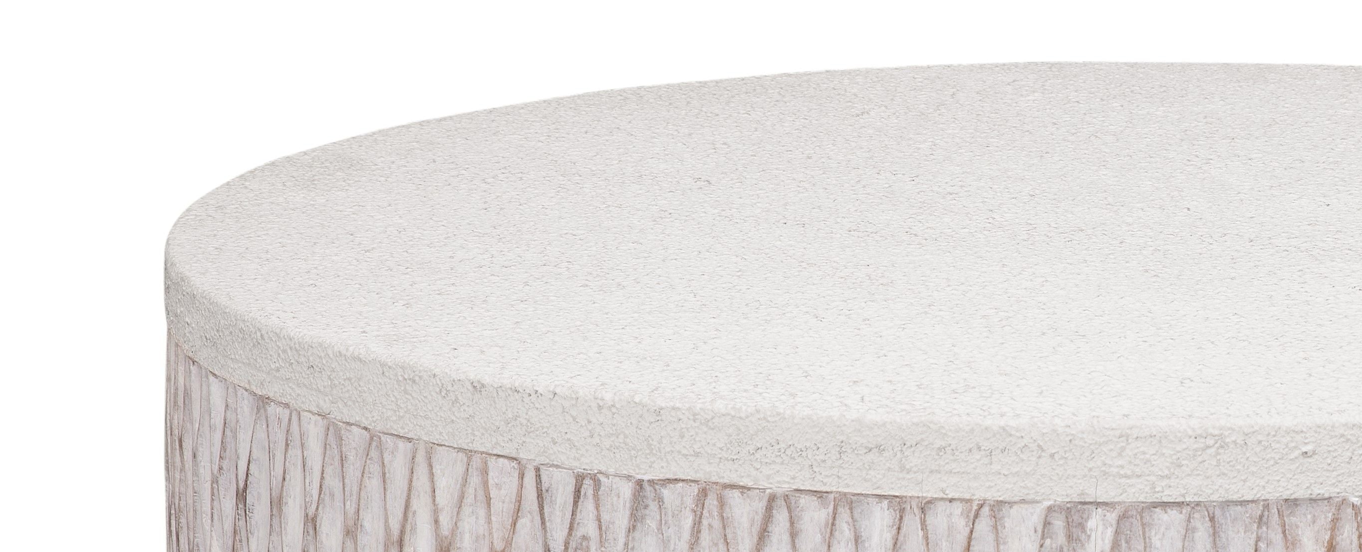 The Brewer Accent Cocktail Table blends coastal and farmhouse with thoughtful design. Crafted with a carved solid mango base in a white-wash finish and topped with textured resin in a plaster finish, this table adds character to any space. With convenient casters for mobility, Brewer offers a blend of style and functionality.
