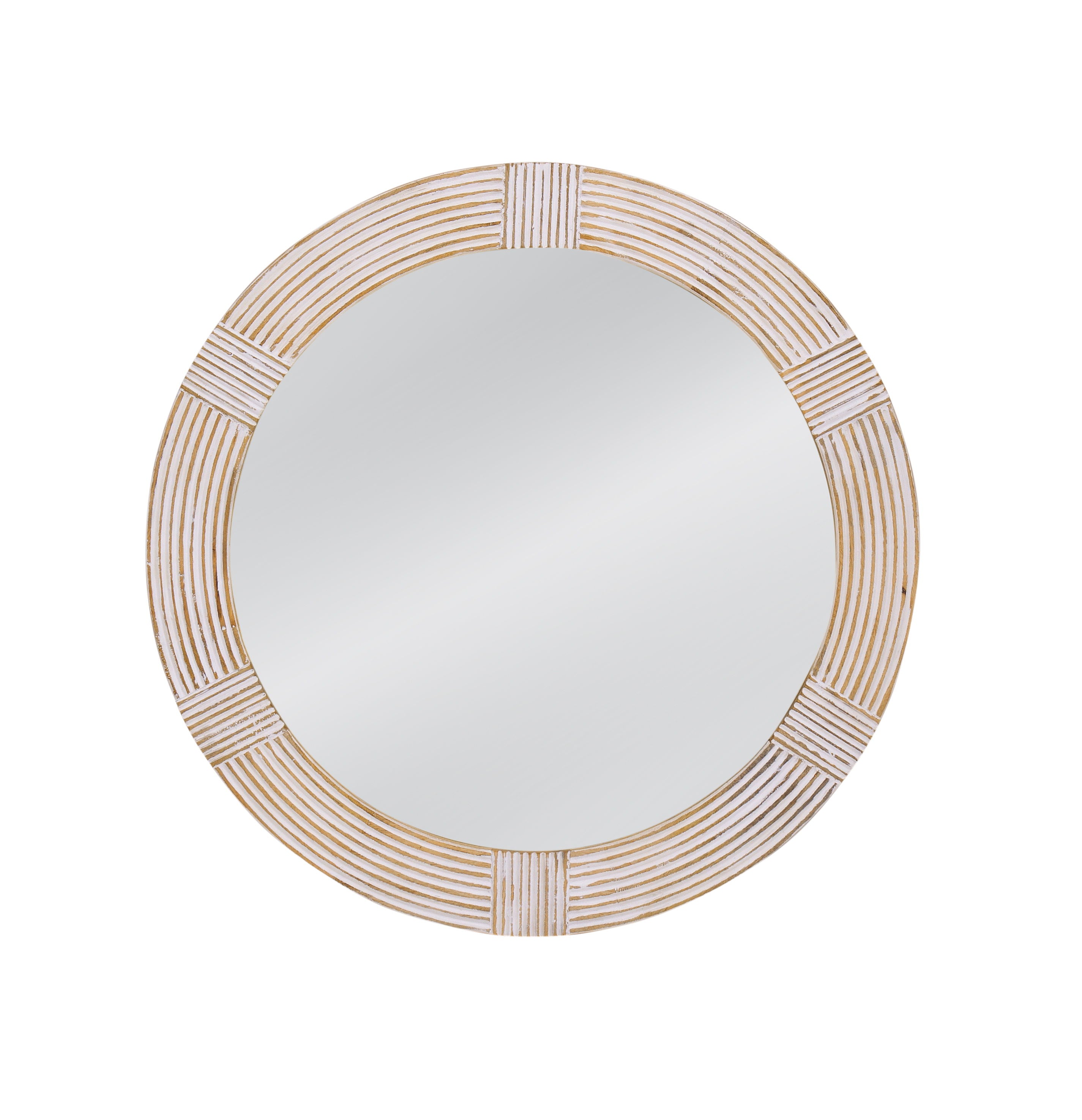 The Brockton Wall Mirror features a round carved wood frame, blending coastal design with boho aesthetics for a relaxed yet stylish look. The intricate carvings add texture and depth, making it a striking focal point in any room. Its natural wood tones and simple yet elegant design bring a touch of warmth and charm, seamlessly complementing various interior styles. The Brockton Wall Mirror is perfect for adding a coastal-inspired, bohemian flair to your home decor.
