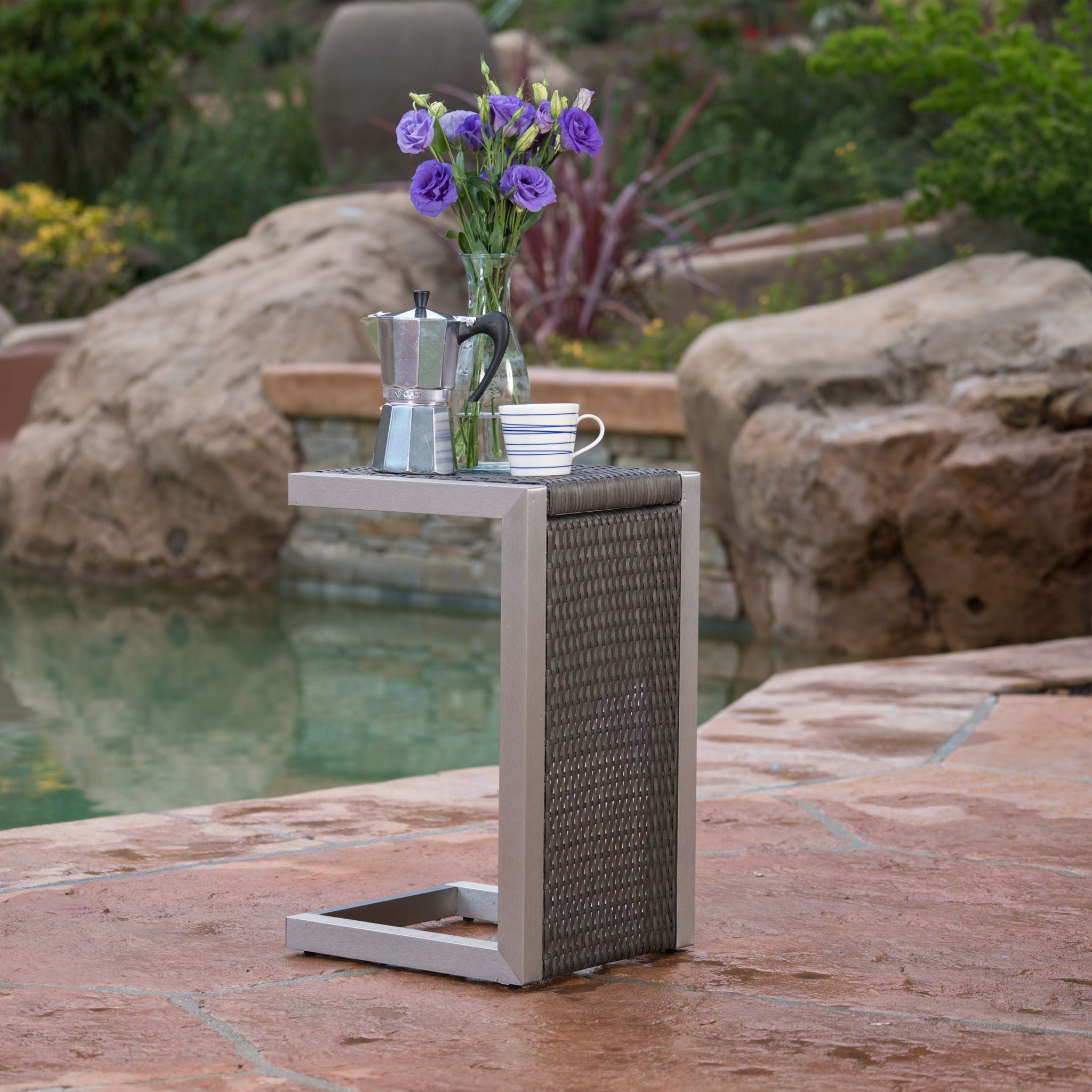 Cape - Coral Wicker C Shaped Table Modern DesignRattan And Aluminum Frame - Brown