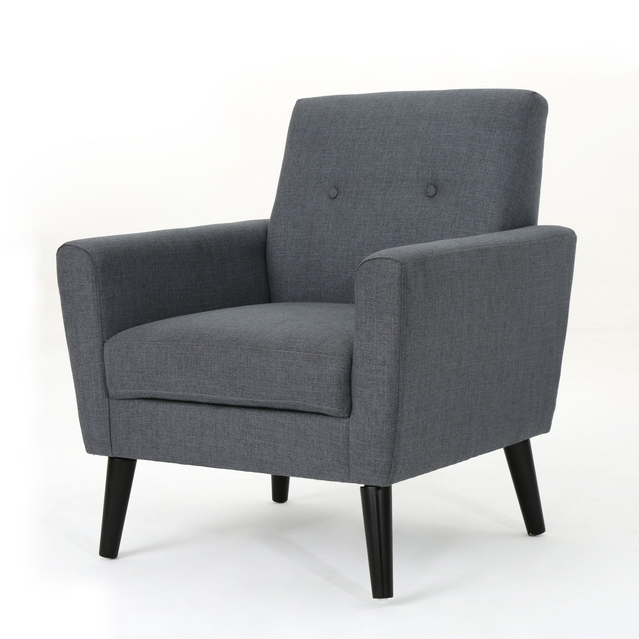 Contemporary Club Chair With Nailhead Trim Fabric And Birch Wood Legs - Dark Gray