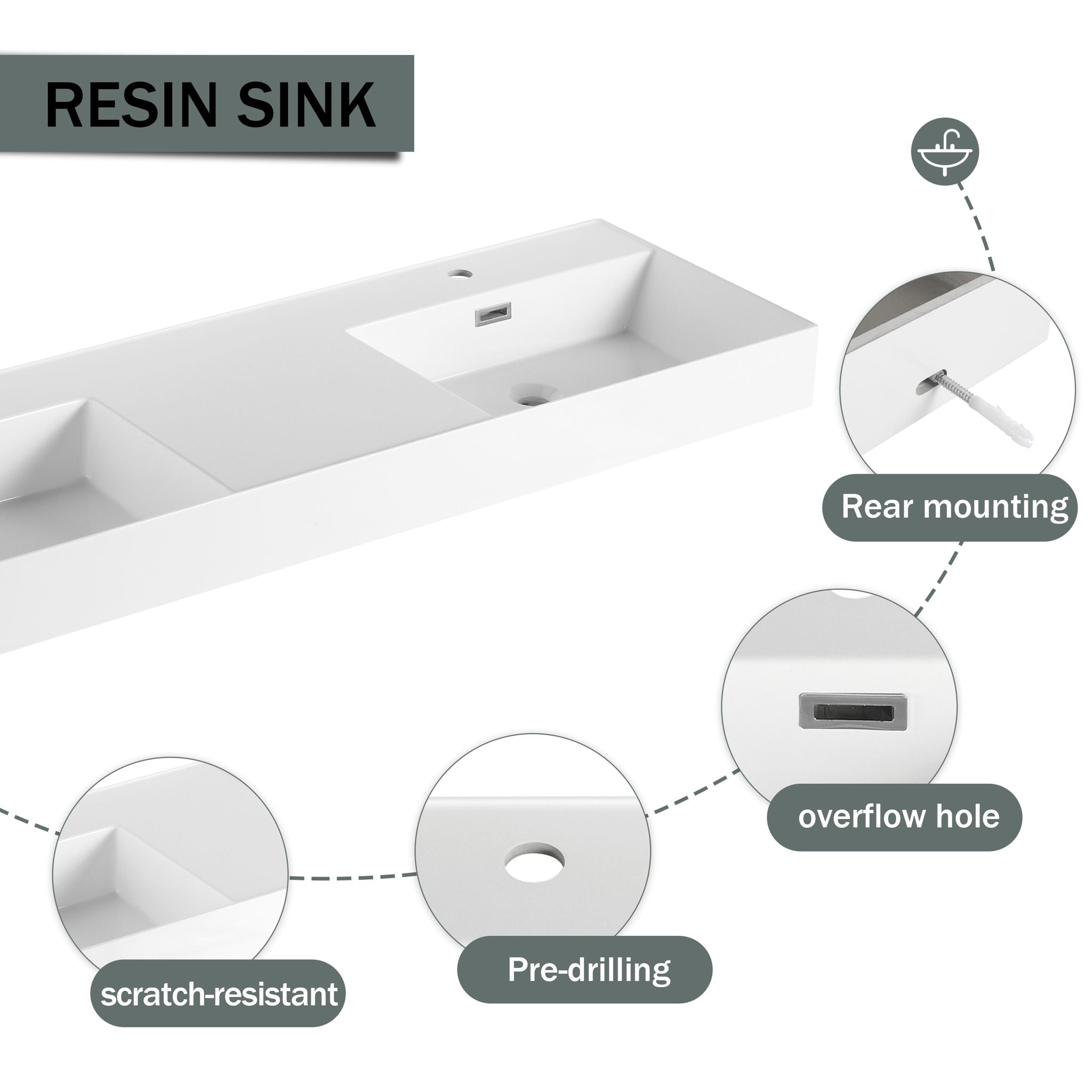 Contemporary Wall Mounted Bathroom Vanity With Dual Resin Sink And Soft Close Drawer