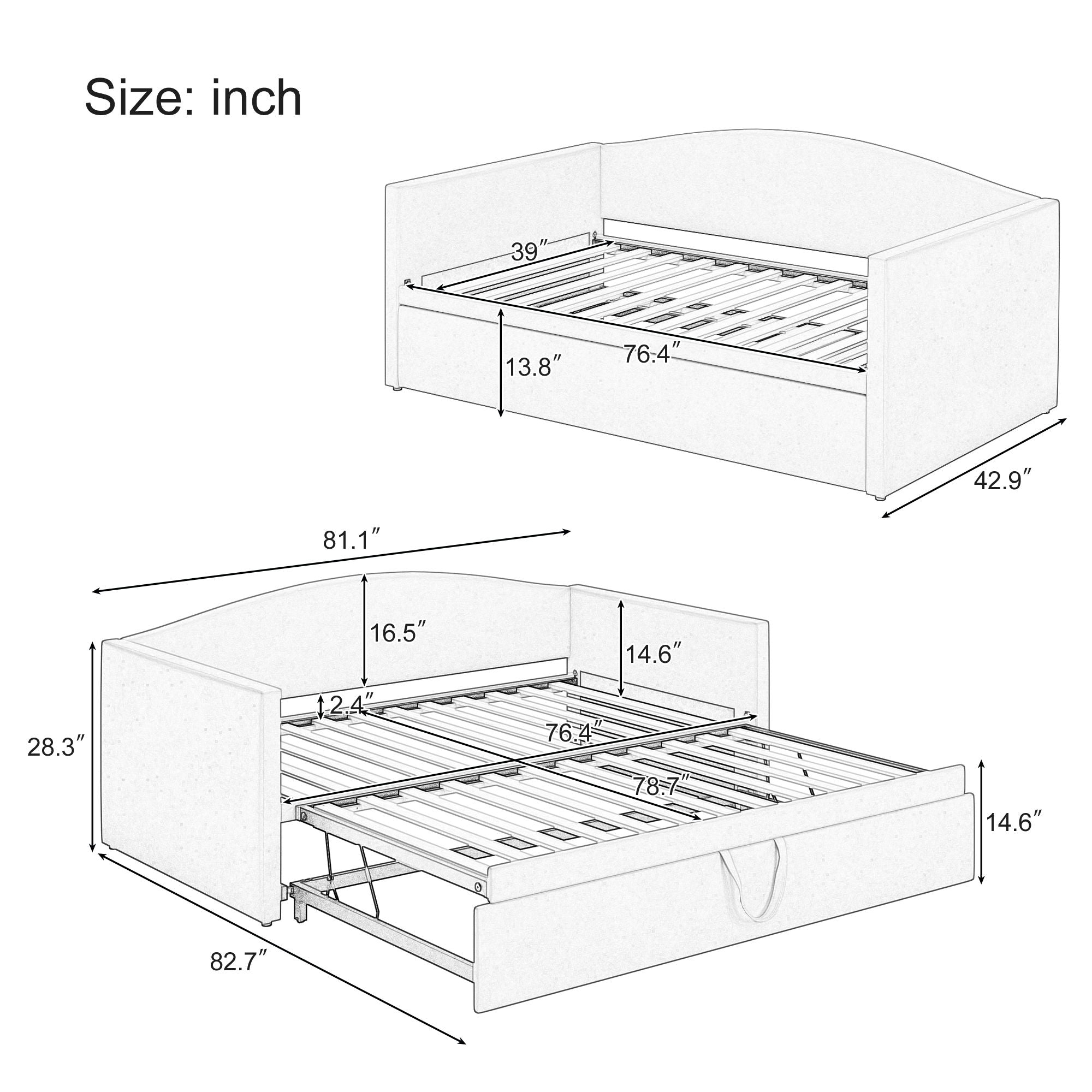 Daybed With Extended Pop Up Trundle, Upholstered Sofa Bed Daybed