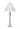 - Features a white tapered shade