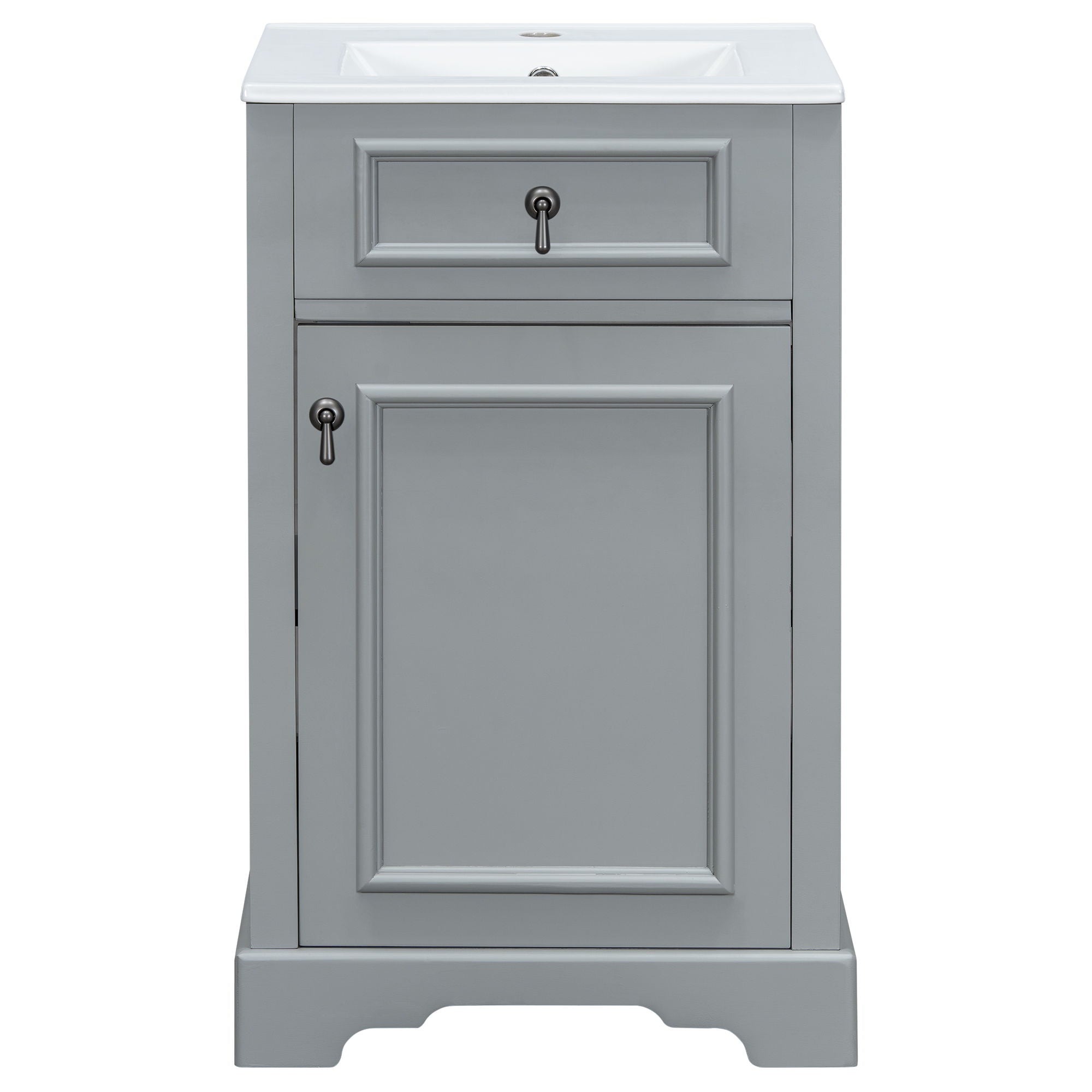 Bathroom Vanity With Ceramic Sink, Soft Close Door, Adjustable Shelf, And Storage Rack - Gray