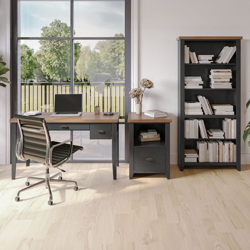 Essex - High 5 Shelf Bookcase - Black, Whiskey