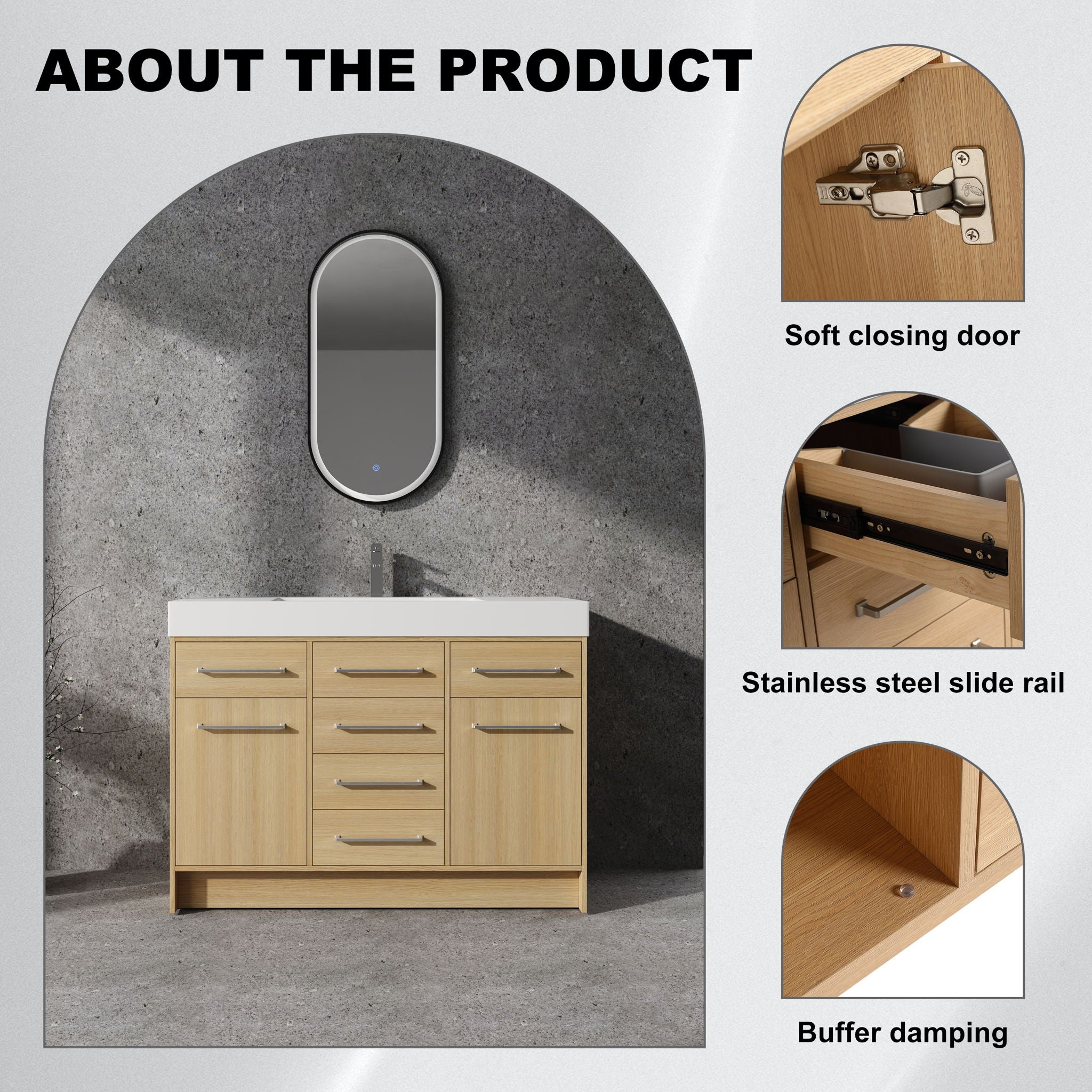 Original 48" Freestanding Bathroom Vanity With Resin Sink Soft Closing Doors And Drawers Plywood Construction - Oak