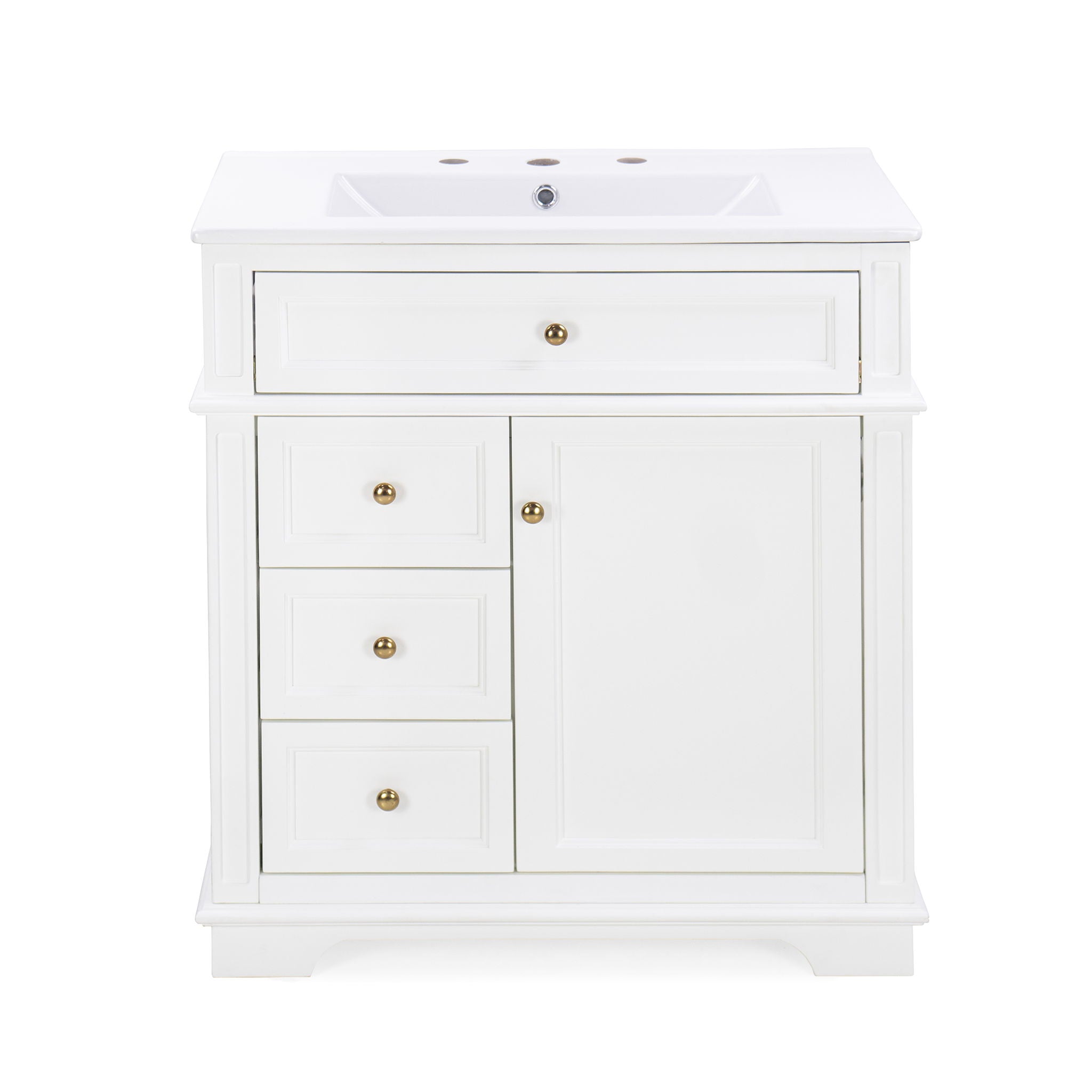 Freestanding 30" Bathroom Vanity With Sink, Soft Closing Door, Tip Out Drawer - White