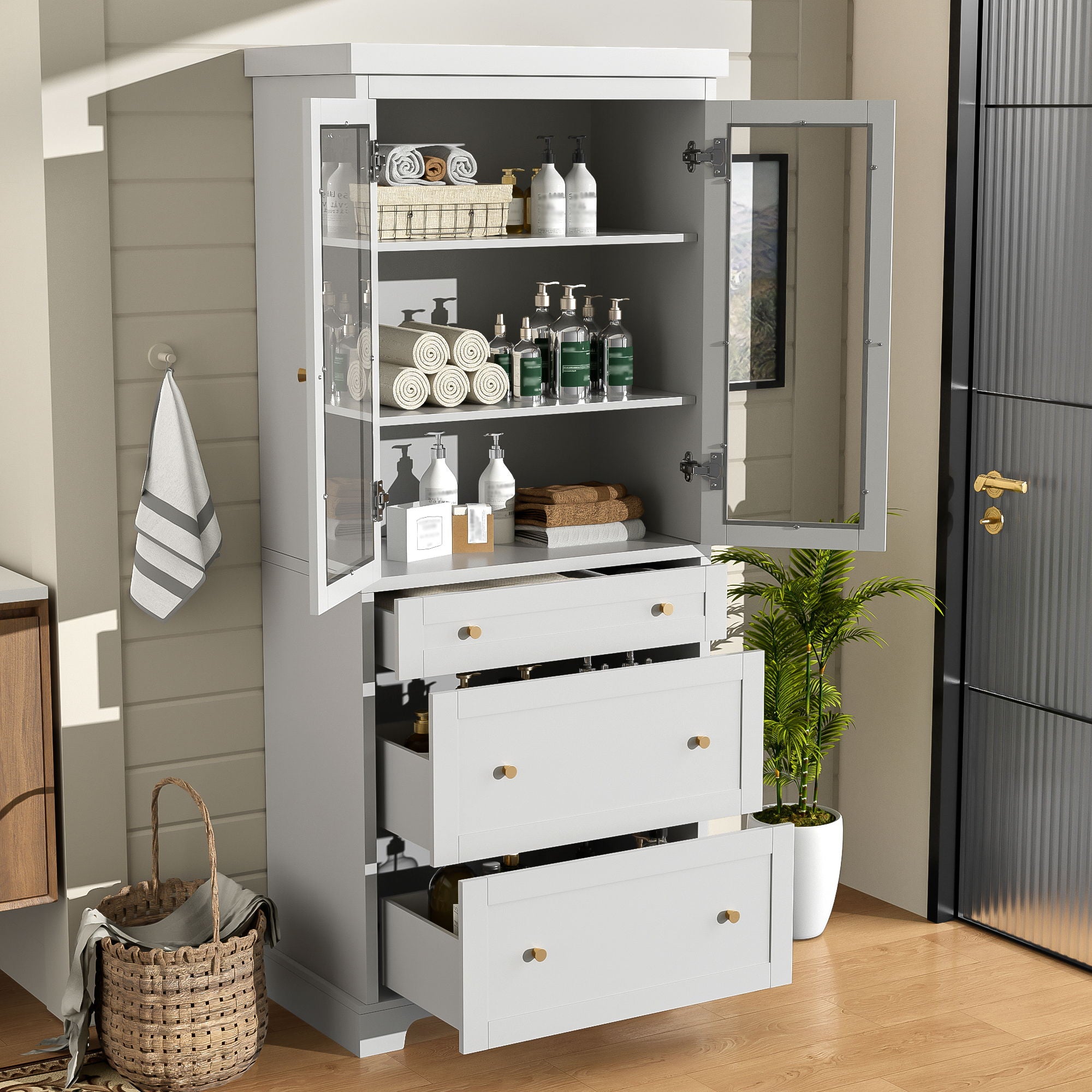 Freestanding Tall Bathroom Cabinet With Adjustable Shelves, Drawers, Soft Close Glass Doors