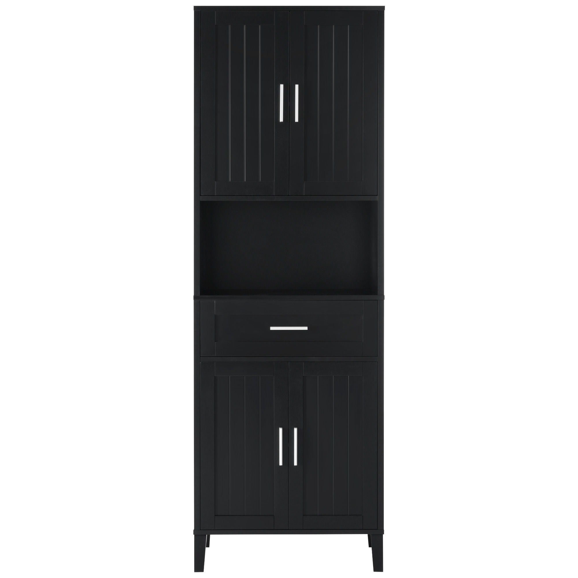 Freestanding Tall Bathroom Cabinet With Soft Close Doors And Adjustable Shelves - Black