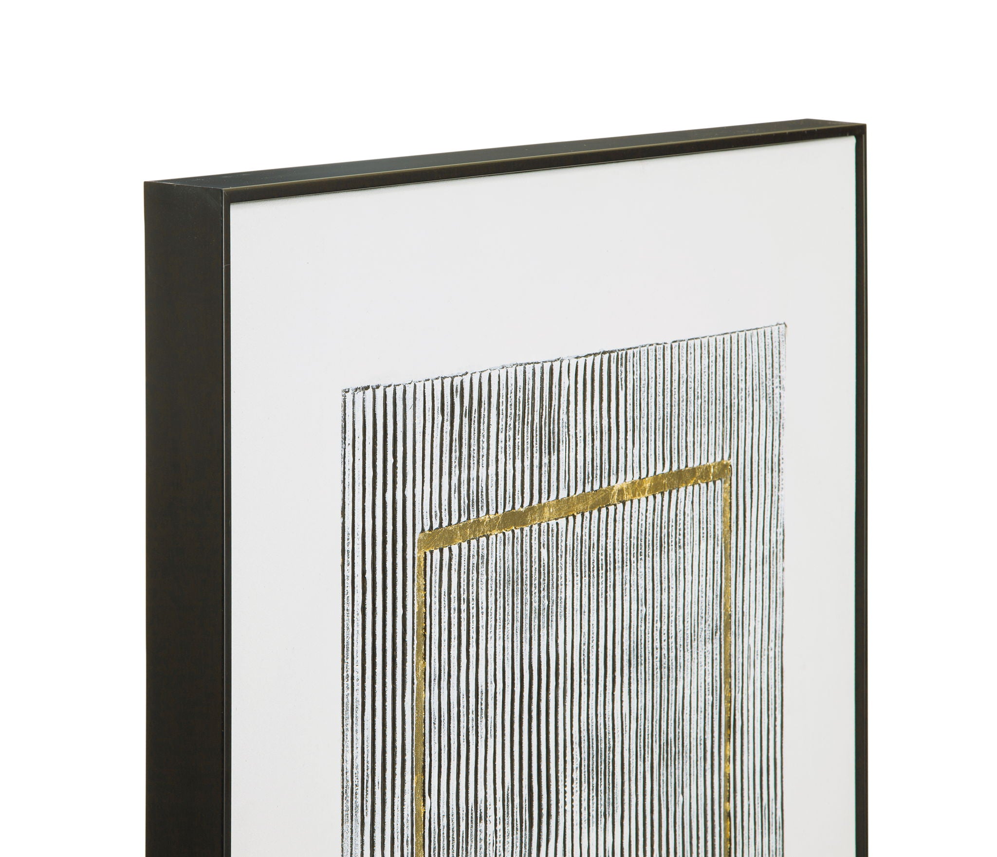 Graphite is a two piece set that is hand painted on canvas in a black frame. D-ring or sawtooth picture hanging hardware included. Finish: black frame. Material: canvas, MDF. This piece of art is hand painted by a skilled artist lending itself to a unique technique and will vary slightly. COO: China.