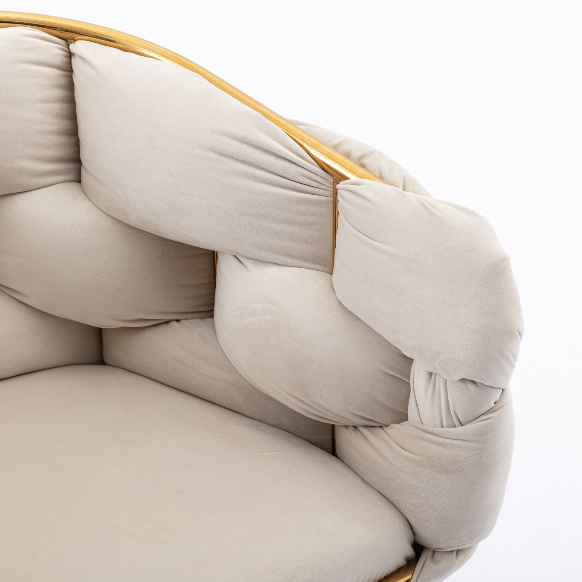 Luxury Modern Simple Leisure Velvet Single Sofa Chair Bedroom Lazy Person Household Dresser Stool Manicure Table Back Chair - Beige