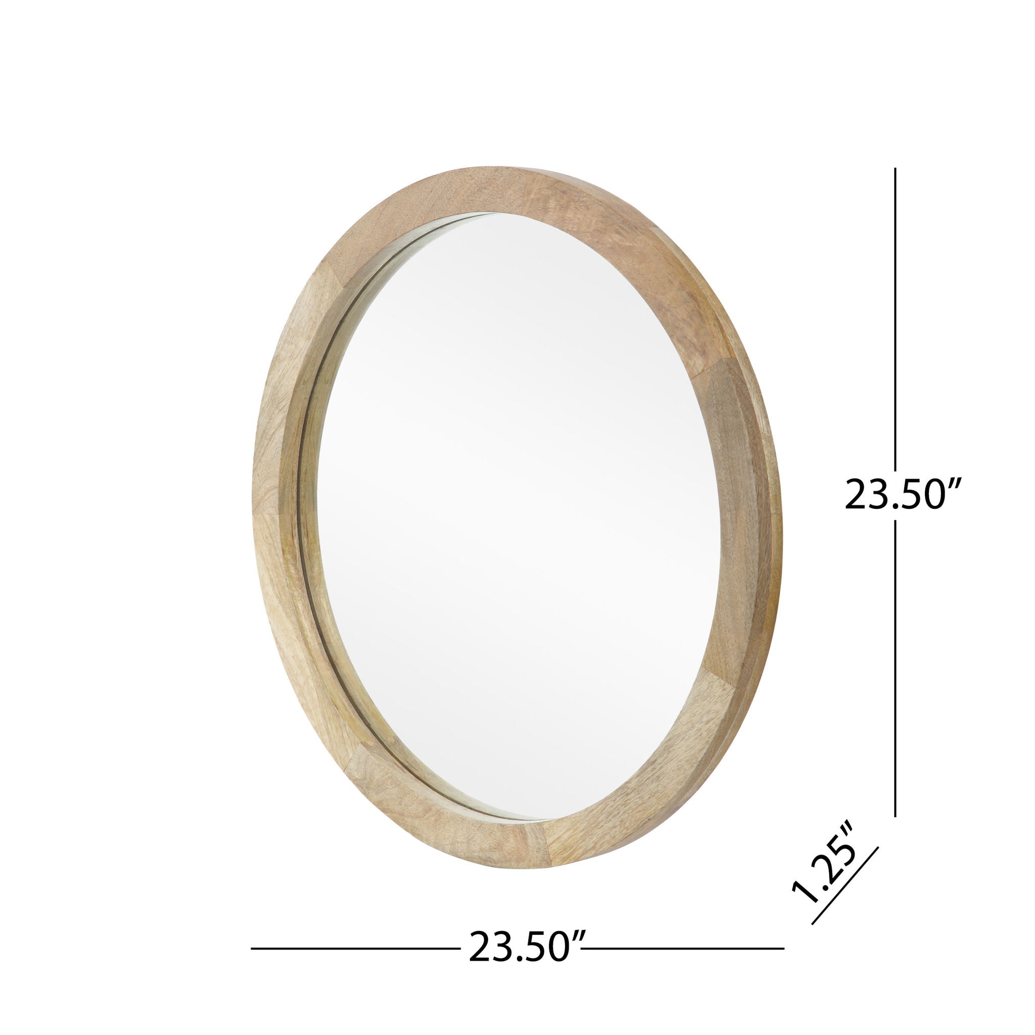 Mango Wood Round Mirror With Glass Surface - Natural