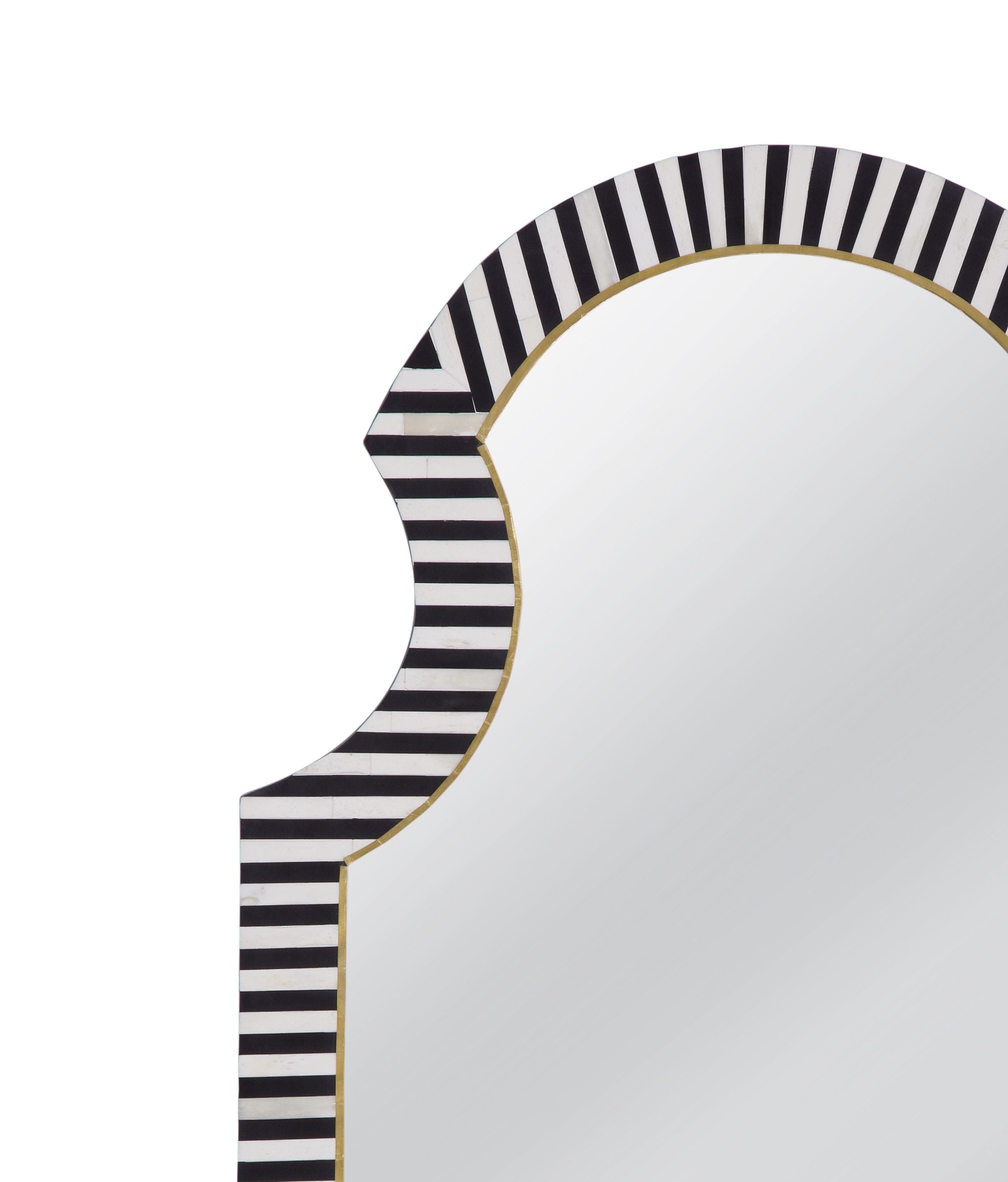 The Martens Wall Mirror showcases a modern boho aesthetic with its captivating arched design and elegant black and cream bone frame. This eye-catching piece adds a touch of sophistication and charm to any space, effortlessly blending contemporary style with timeless appeal. Crafted with meticulous attention to detail, it serves as a versatile accent that enhances the ambiance of your home decor.