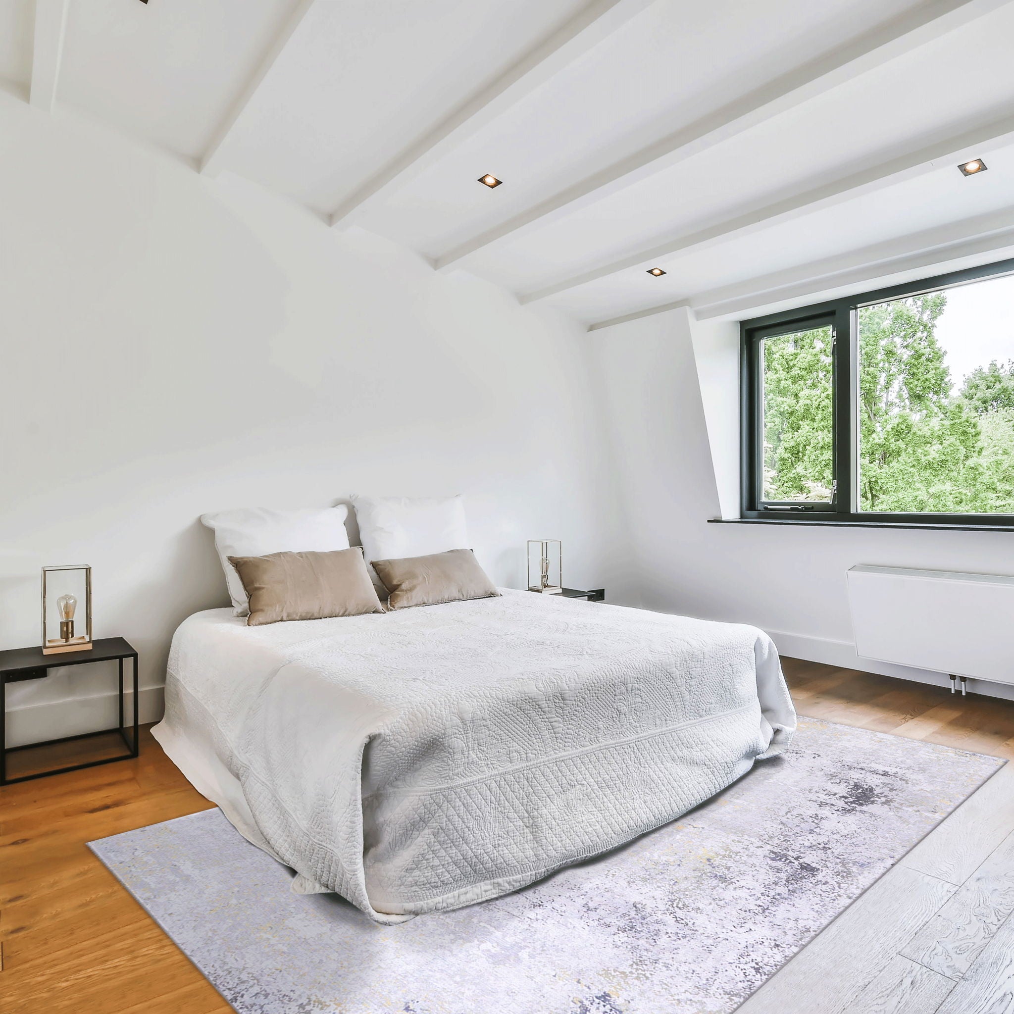 Maval - 6' X 9' Washable Area Rug - Gray / Gold