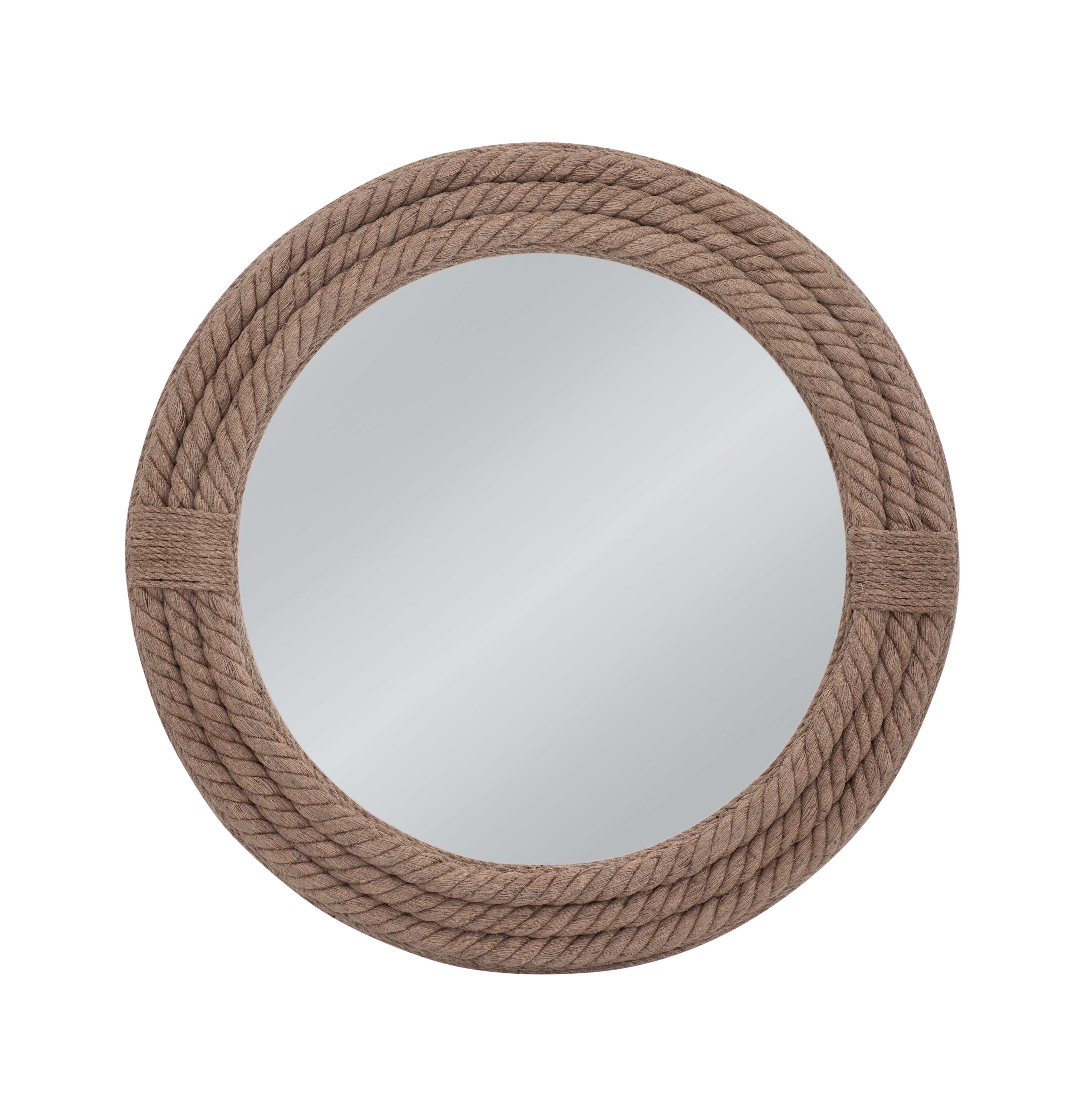 The Mayflower Wall Mirror features a coastal design with a round shape and a unique rope frame, adding a relaxed, nautical touch to any room. The natural texture of the rope complements the mirrors clean lines, creating a charming, beach-inspired aesthetic. Perfect for enhancing a variety of interior styles, this mirror brings both style and functionality to your home. The Mayflower Wall Mirror is a versatile piece that adds warmth and character to your space with its coastal flair.