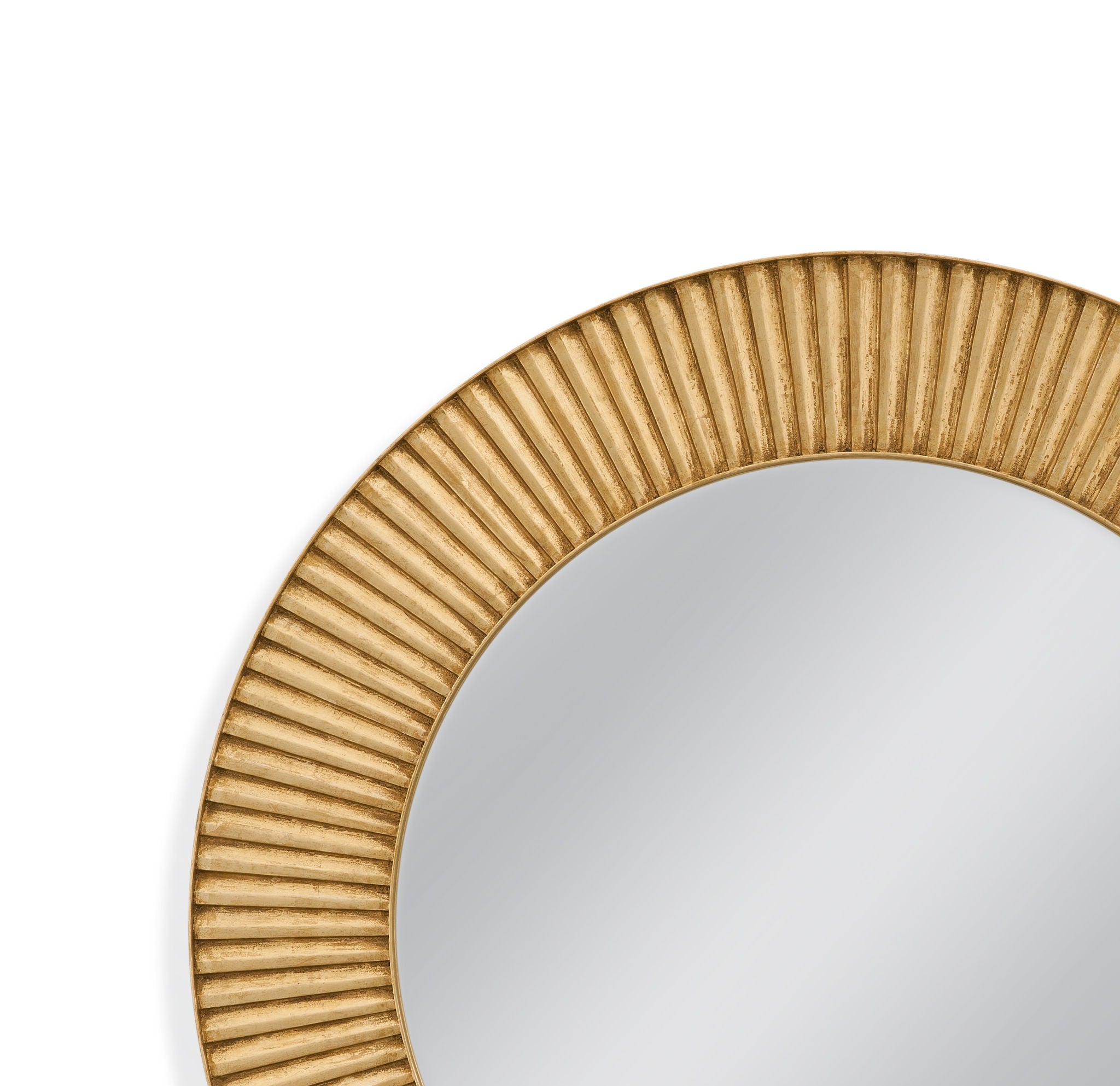 Midtown Wall Mirror is round with a 6" gold sunburst like frame.