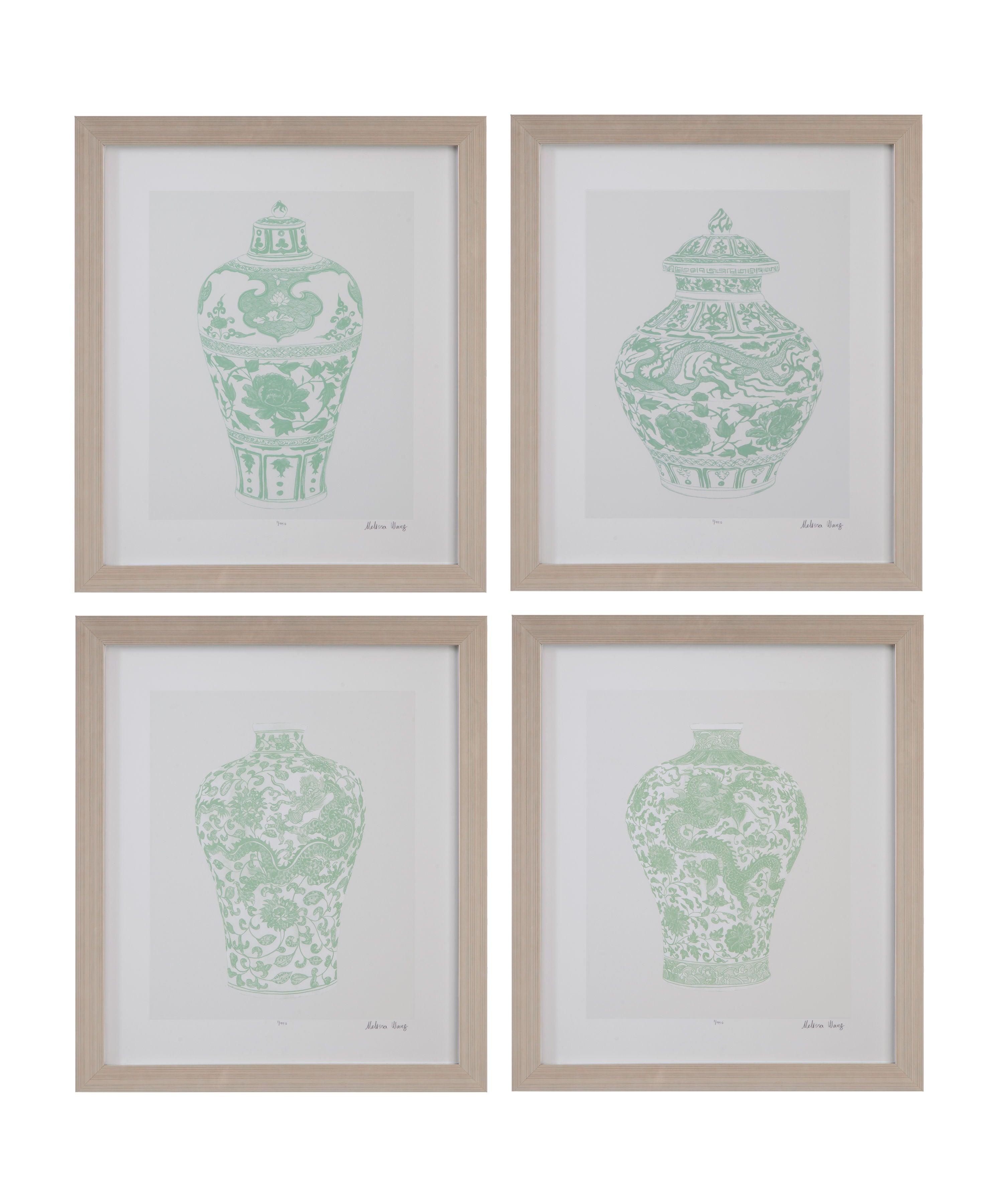 Mint Vases IV is a limited edition print, signed and numbered by the artist and printed on fine art cotton rag paper. The print is framed in a 1 inch silver tone frame.