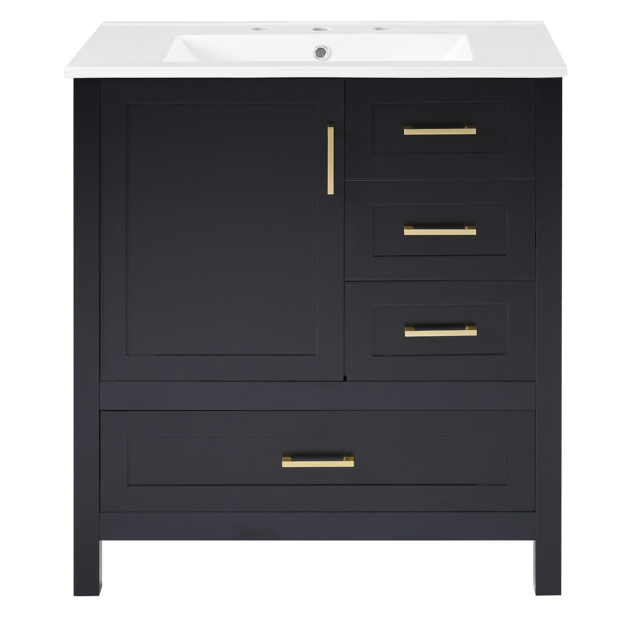 30" Bathroom Vanity With Sink Storage Solutions - Black