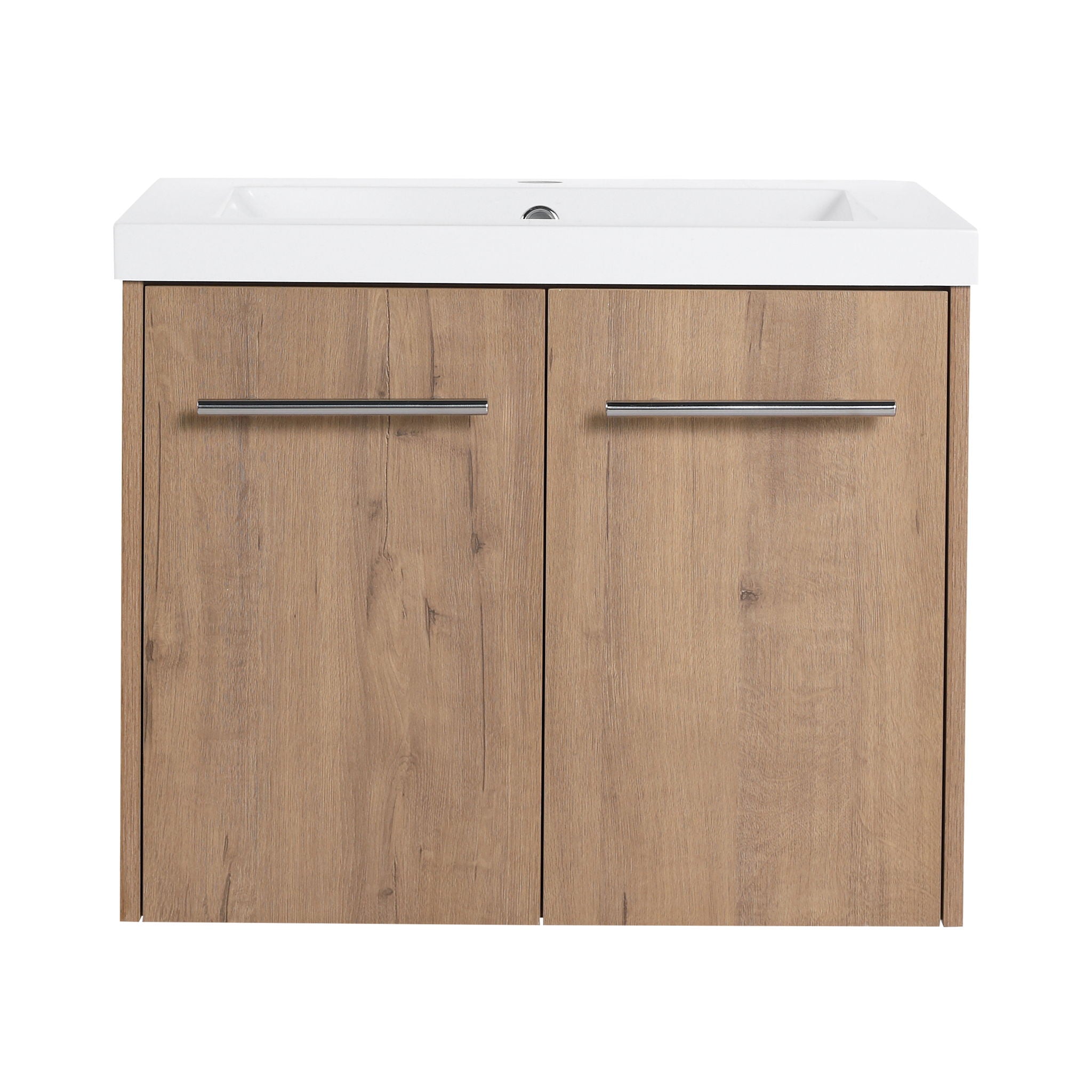 Modern Floating Bathroom Vanity With Resin Sink Soft Close Doors 24" Plywood Design - Imitative Oak