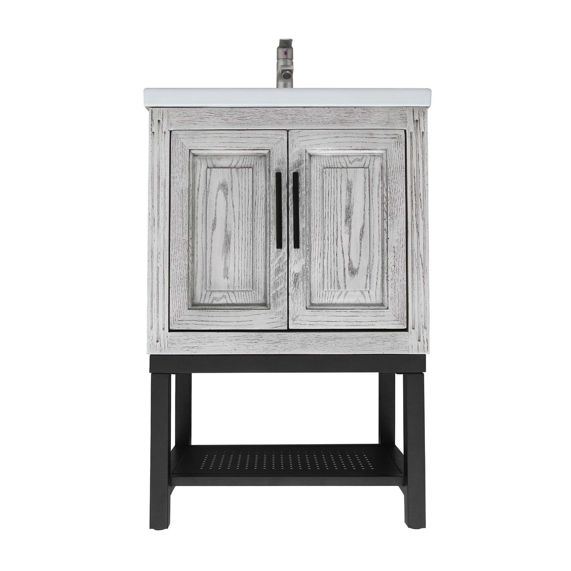 Modern Freestanding Bathroom Vanity With Ceramic Sink, Hot And Cold Faucet, Storage Cabinet & Open Shelf