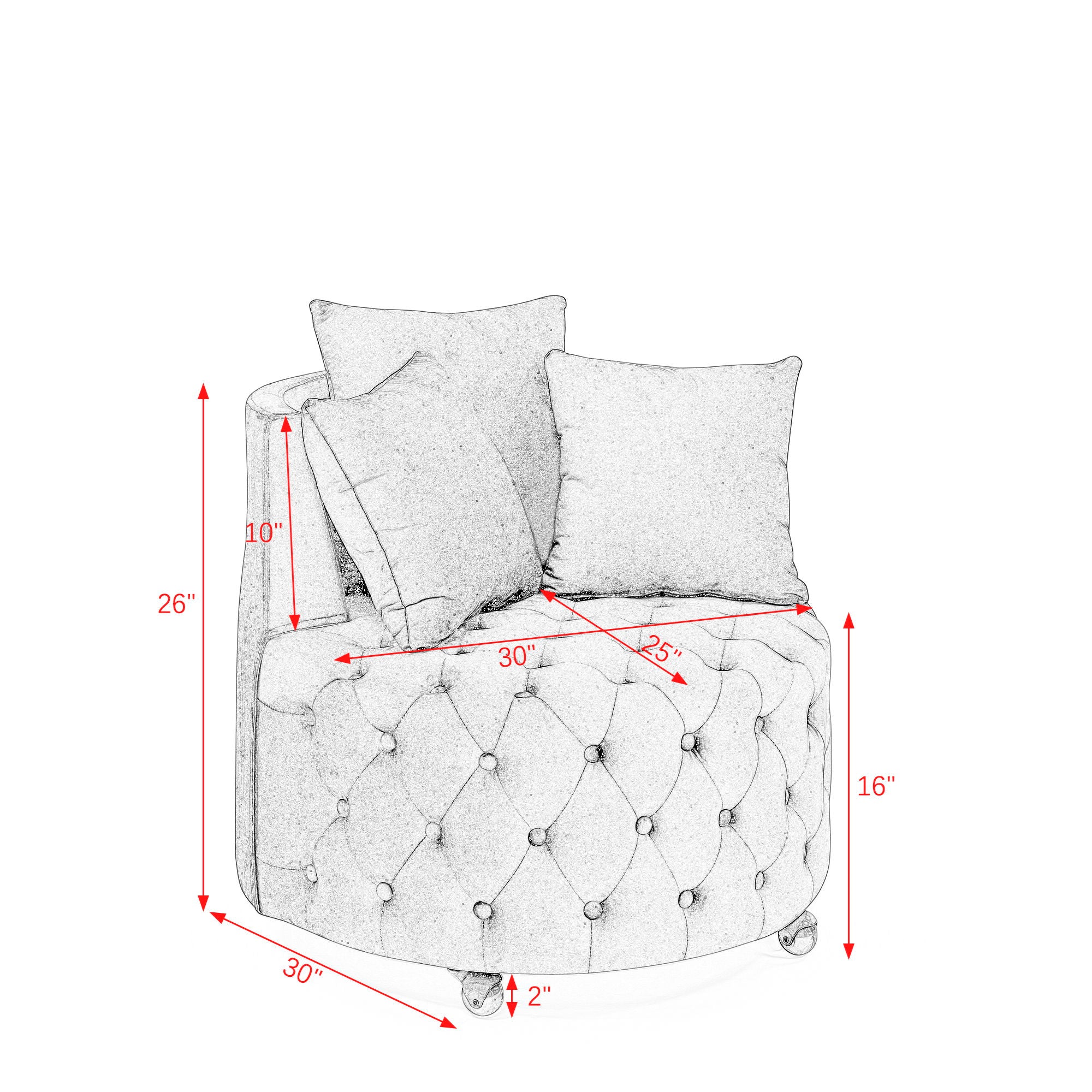 Modern Upholstered Swivel Chair With Button Tufted Design And Movable Wheels