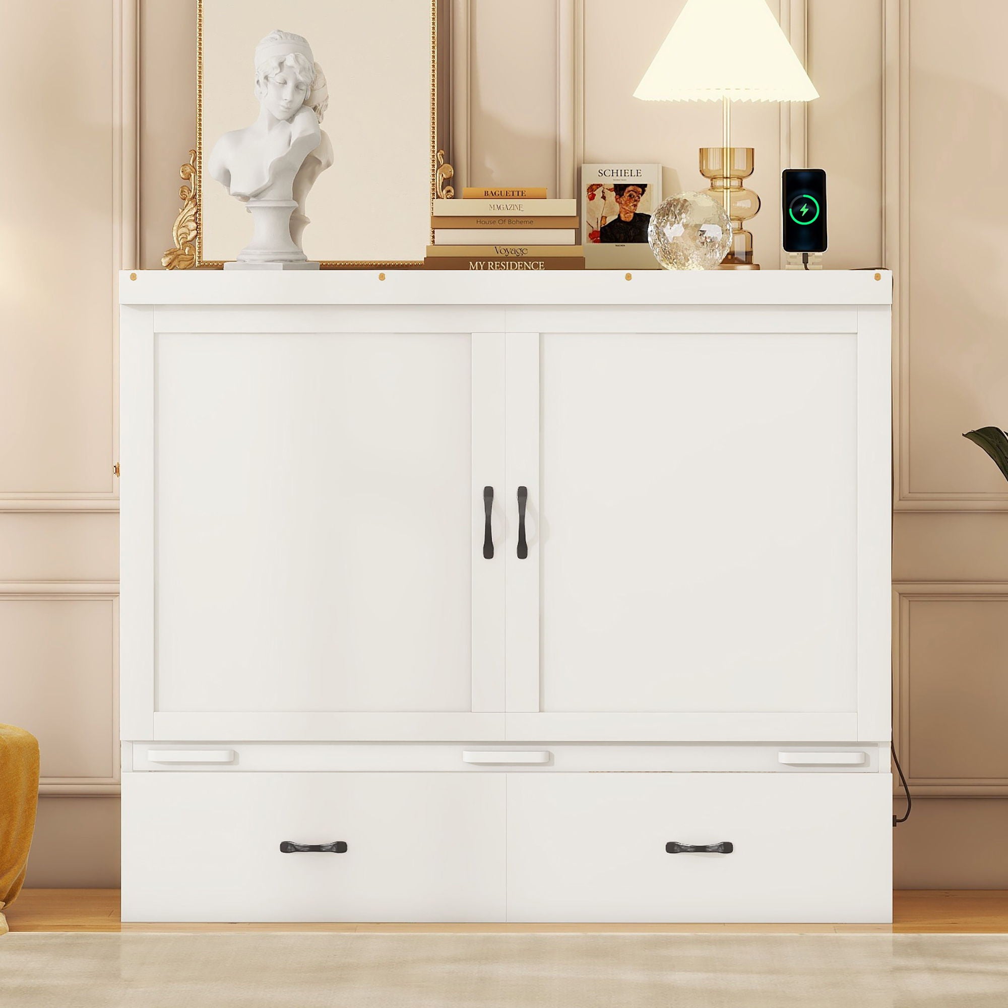 Full Size Murphy Bed With USB Port And A Large Drawer - White