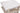 - White top with taupe marbling sits on brown thick, tapered square legs