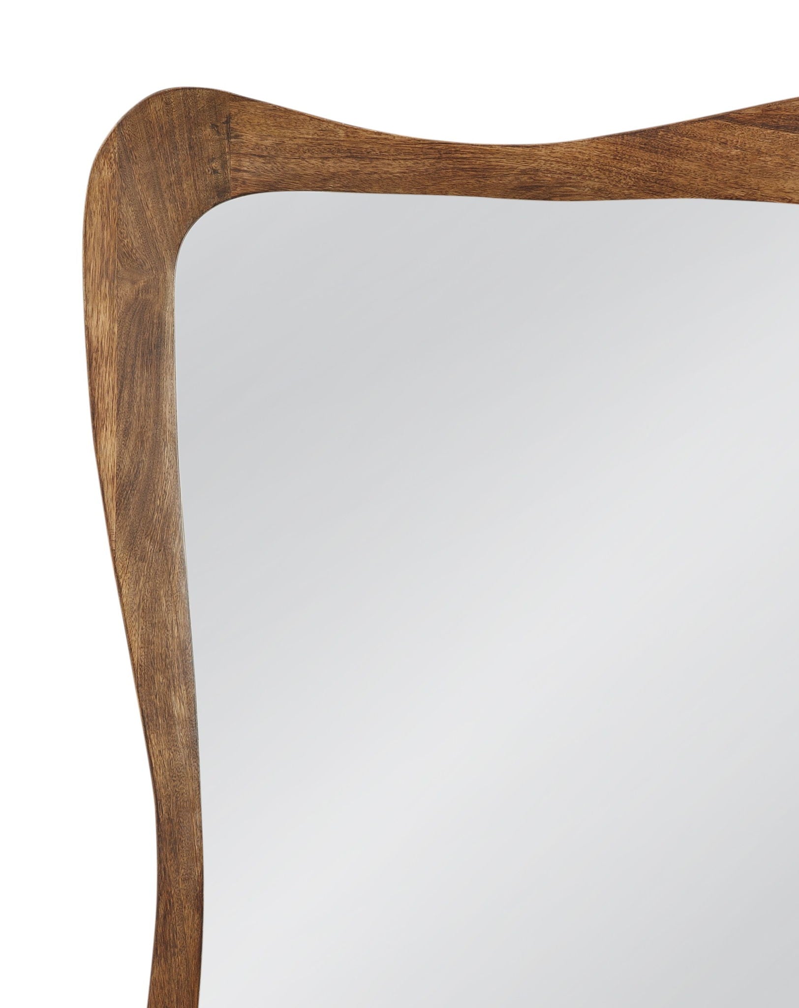 The Penelope Wall Mirror showcases an elegant organic silhouette framed in warm walnut wood. Its fluid form blends modern design with boho-inspired charm, adding natural warmth and sculptural interest to any space.