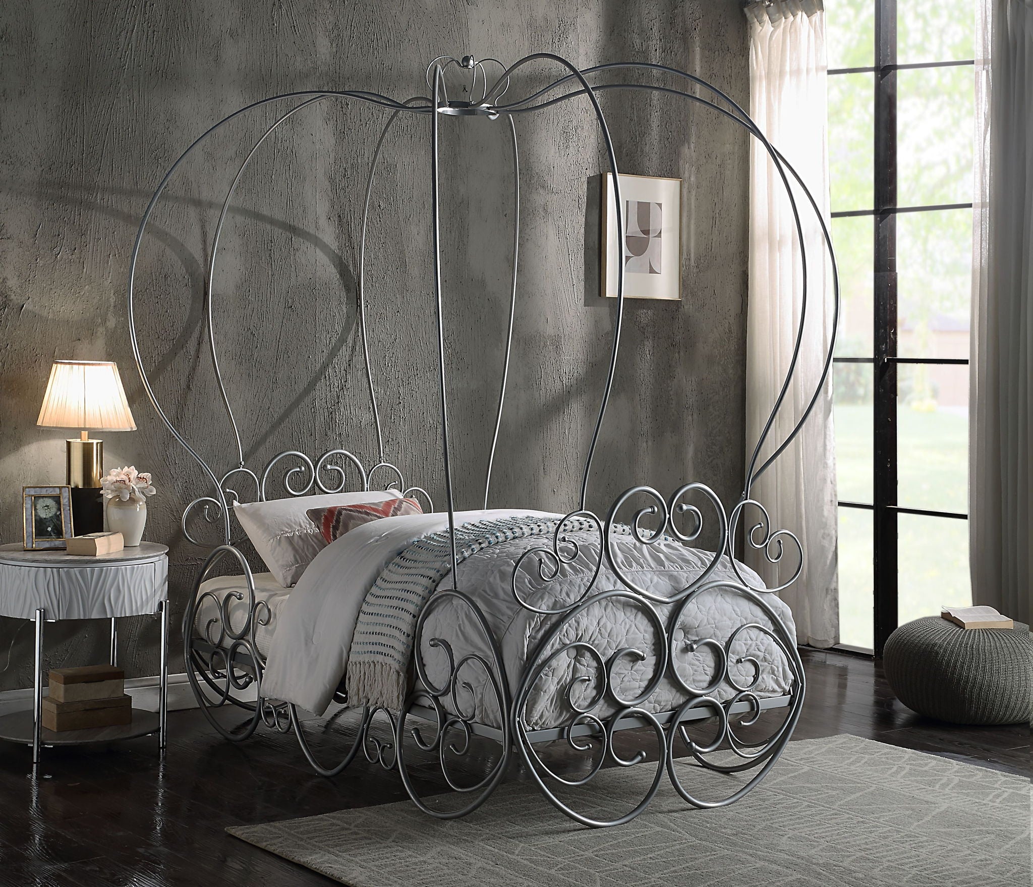 - Whimsical Design: This Twin Metal Bed with canopy offers a playful and charming look, making it ideal for children's rooms or guest spaces. Its pumpkin design and scrolled side rails add a unique and delightful character to any room.