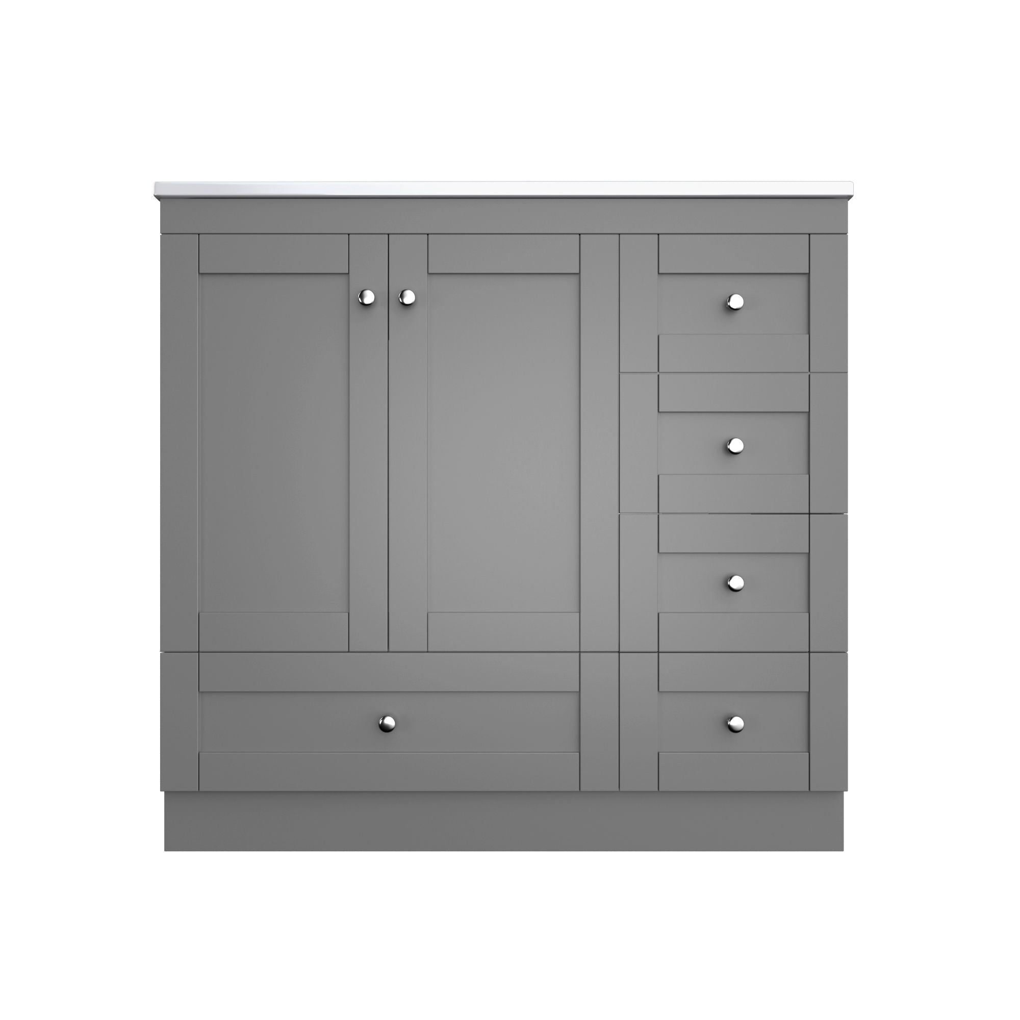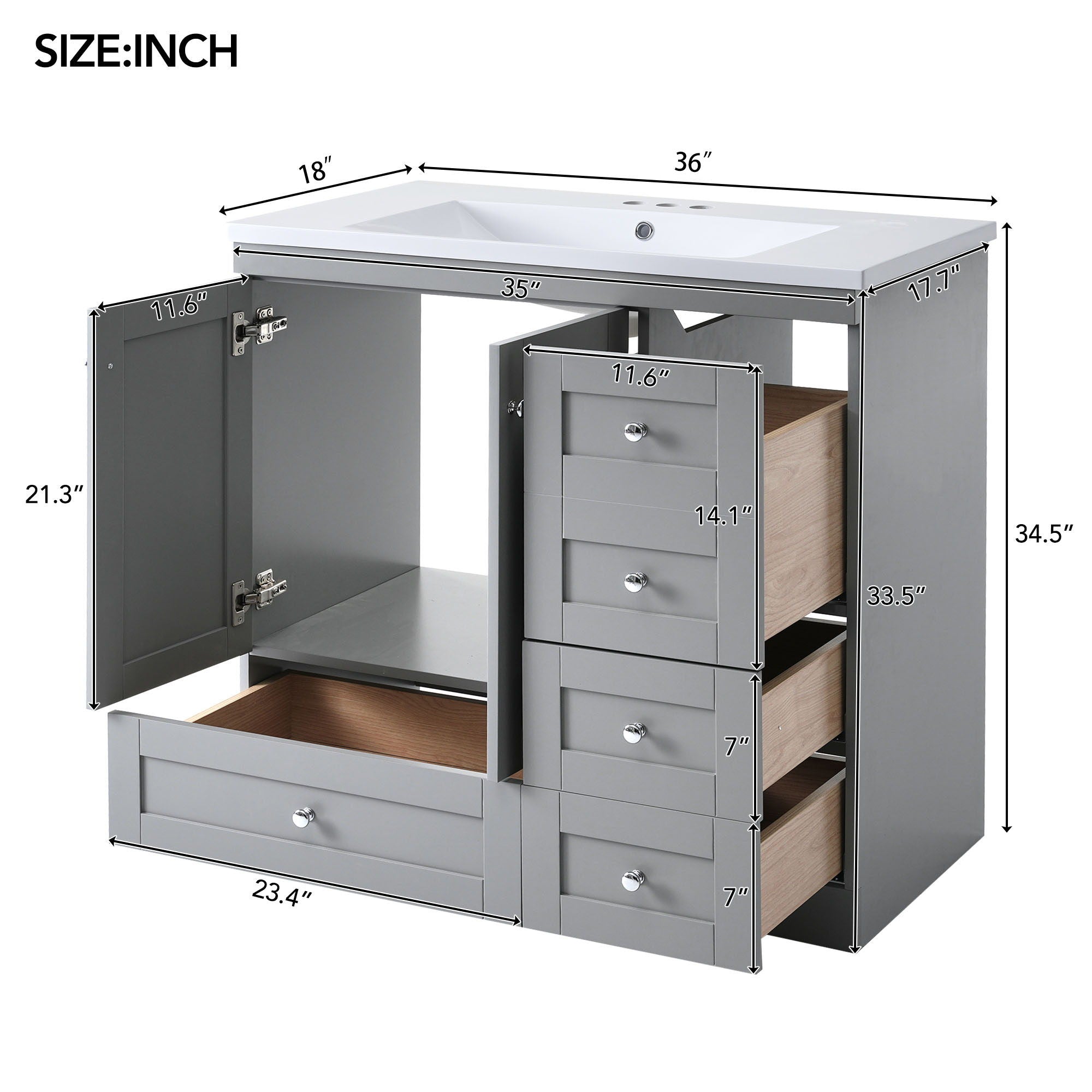 36" Shaker Free Standing Bathroom Vanity Cabinet With Sink, Soft Close Drawers, Soft Close Doors - Gray
