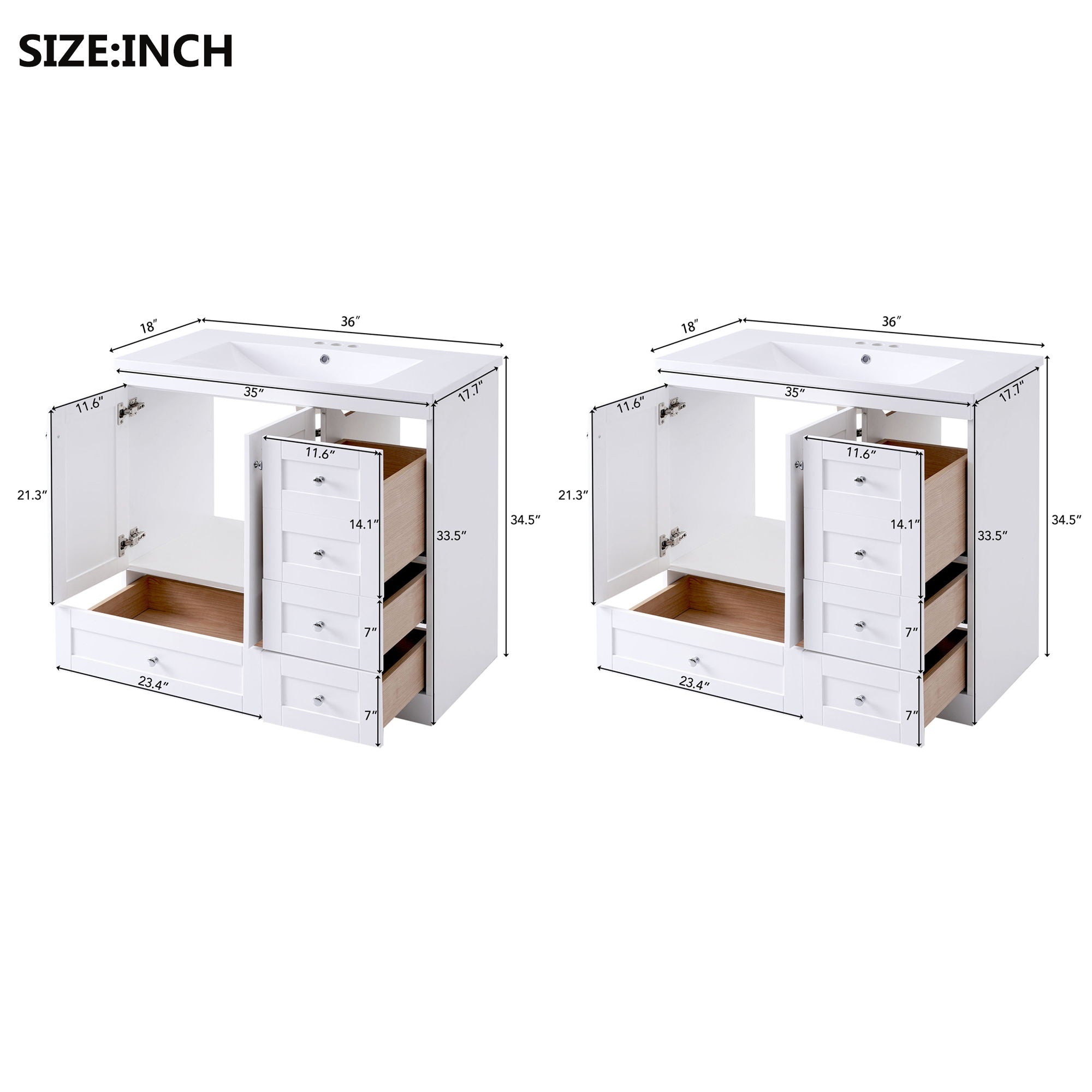 Shaker Style Free Standing Bathroom Vanity Cabinet With Sink, 4 Soft Close Drawers And 2 Soft Close Doors - White