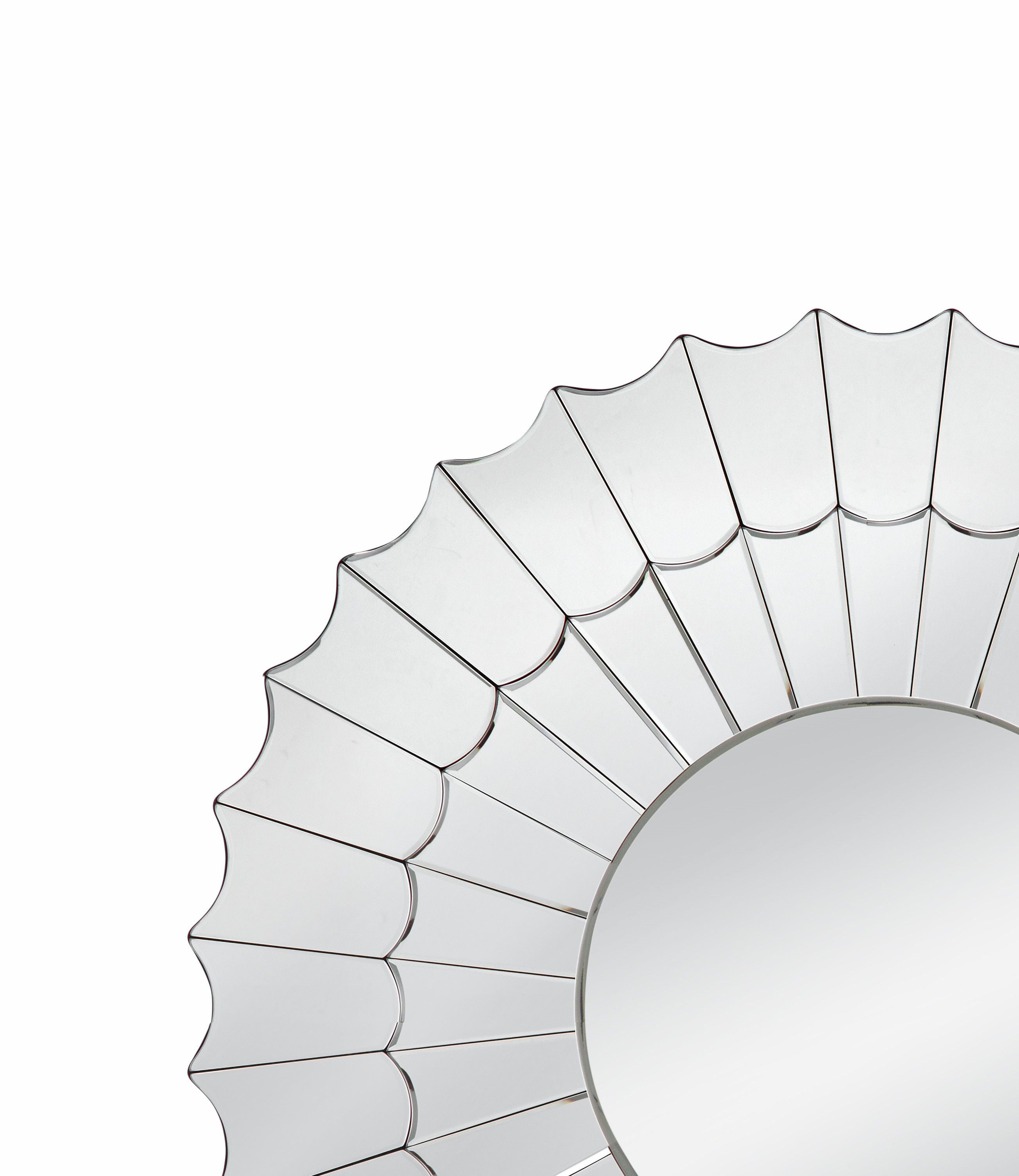 The Stringer Wall Mirror showcases a glamorous traditional aesthetic with its radiant round design and sleek silver finish. Crafted to enhance any space, its elegant simplicity adds timeless charm to your decor. An exquisite choice for those seeking a touch of sophistication in their home.