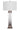 - Features a white, fabric, drum-shaped lamp shade