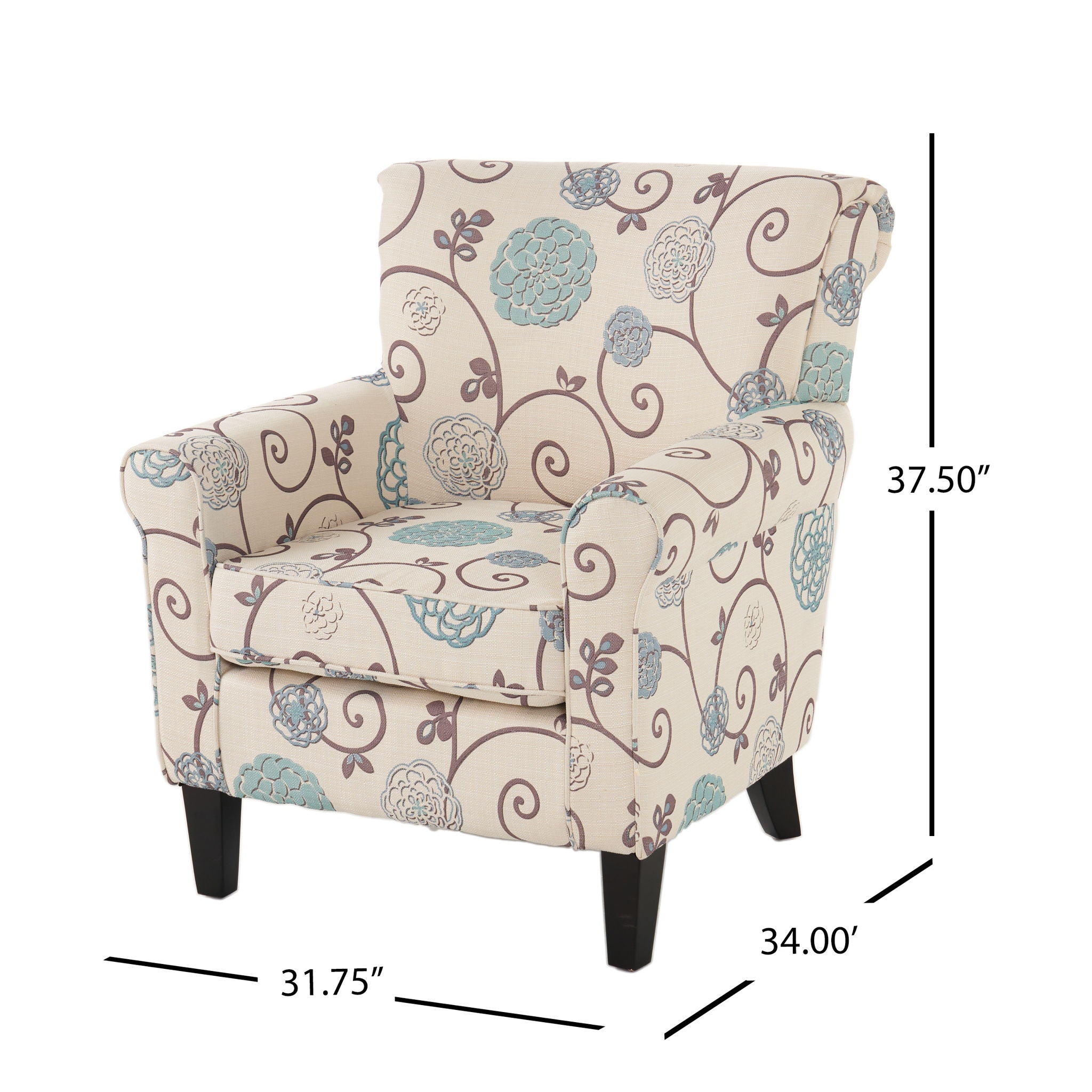 Upholstered Chair With Floral Pattern Design And Solid Wood Legs - Multi Color