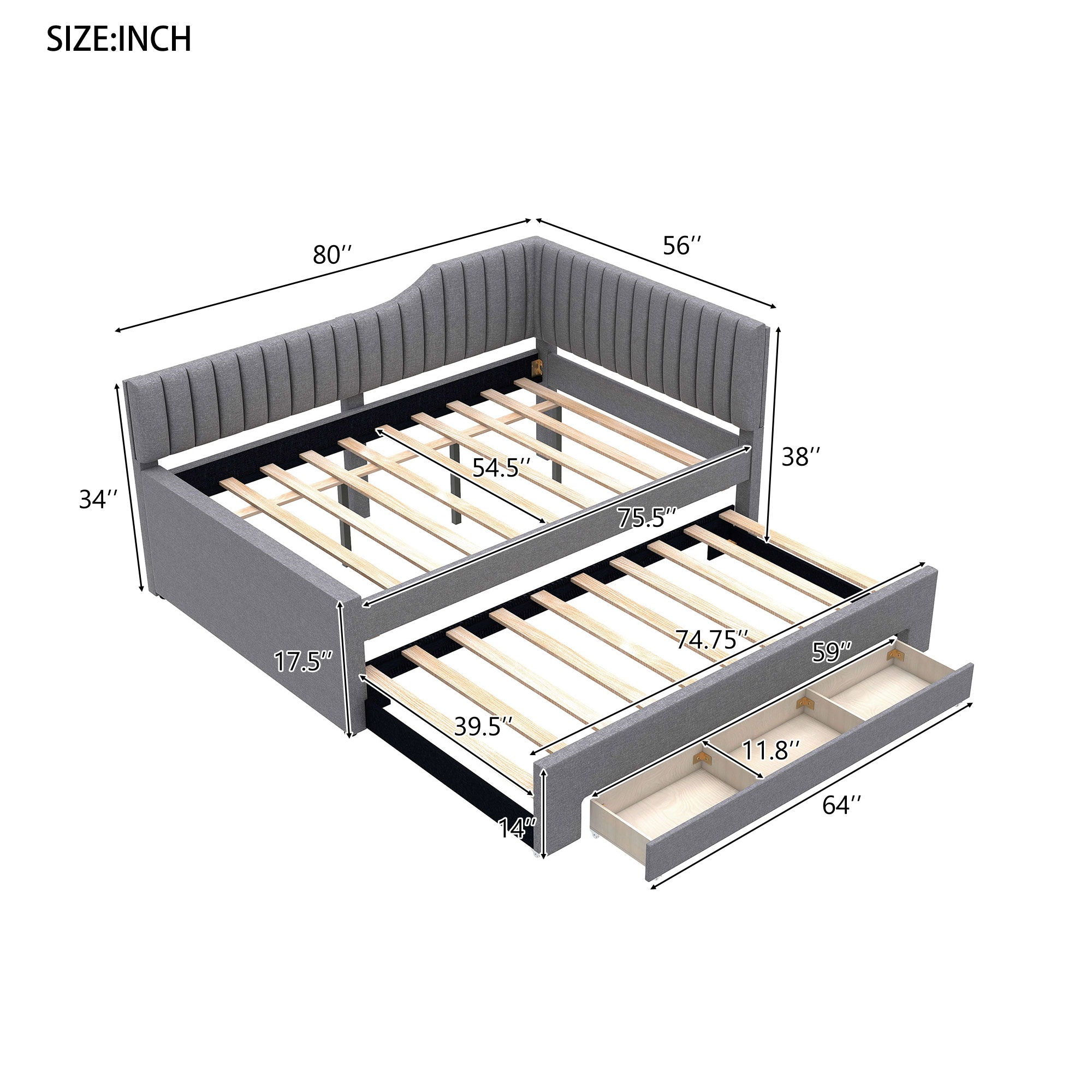 Upholstered Daybed With Trundle And 3 Drawers