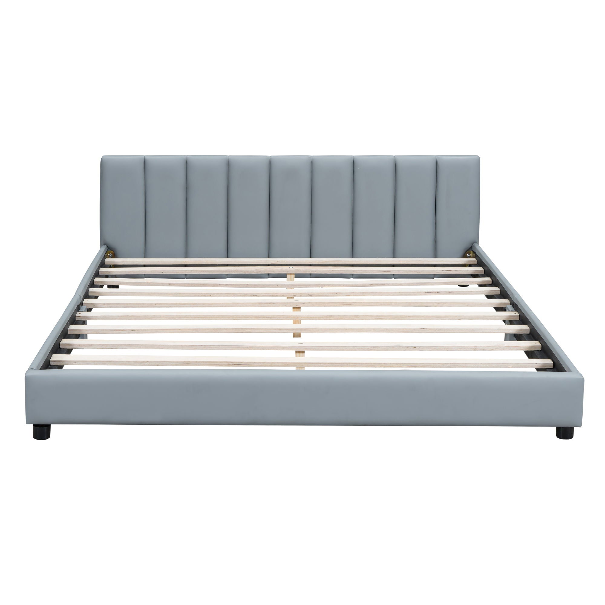 Queen & Twin Long Size Upholstered Platform Bed, Mother & Child Bed - Gray